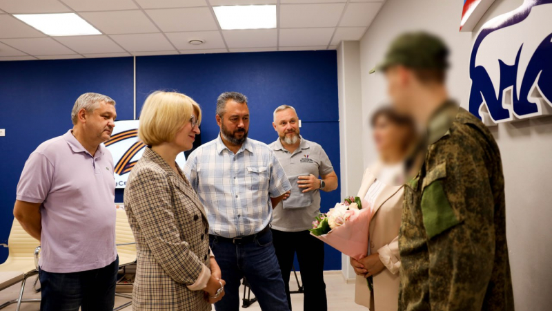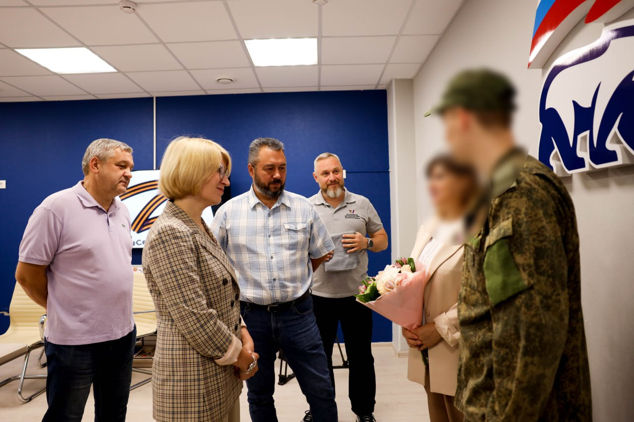 В местном отделении партии «Единая Россия» встретились с участником специальной военной операции. Боец с позывными «Биг» находится в отпуске. На встречу молодой человек пришёл вместе с мамой.