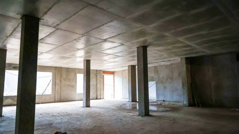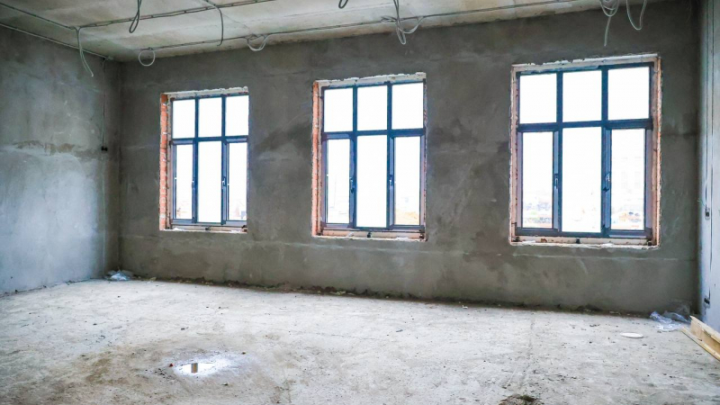 На сегодняшний день проводится устройство наружных инженерных коммуникаций. Выполняется установка окон, внутри здания – черновая отделка.
