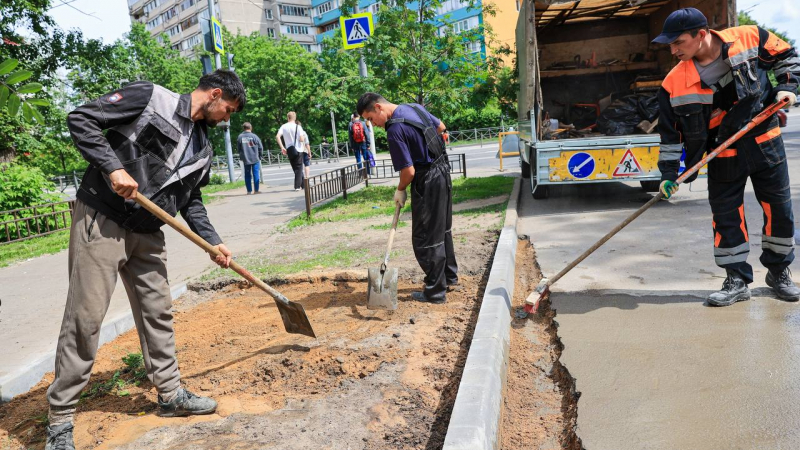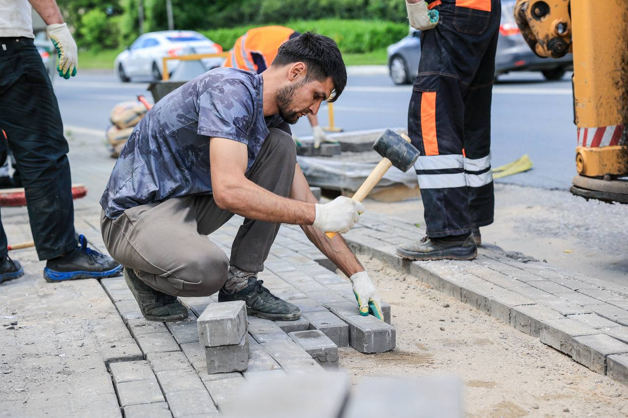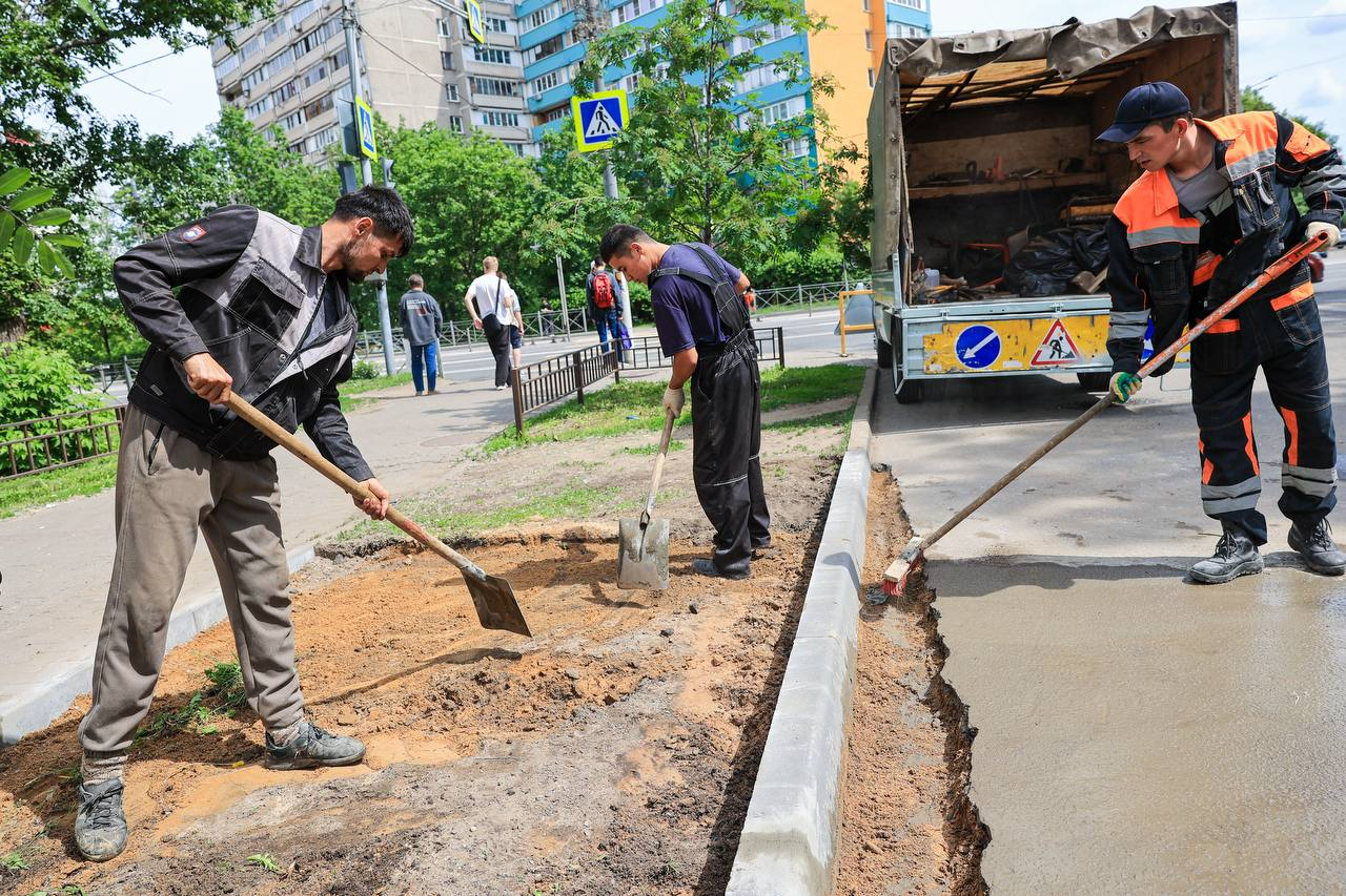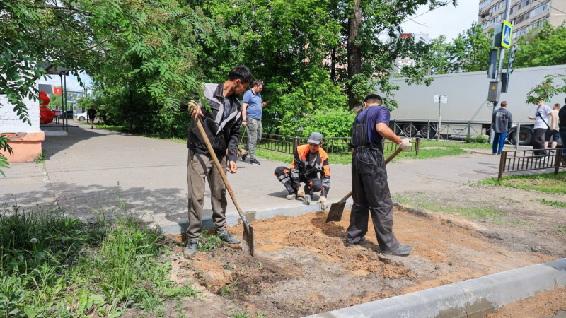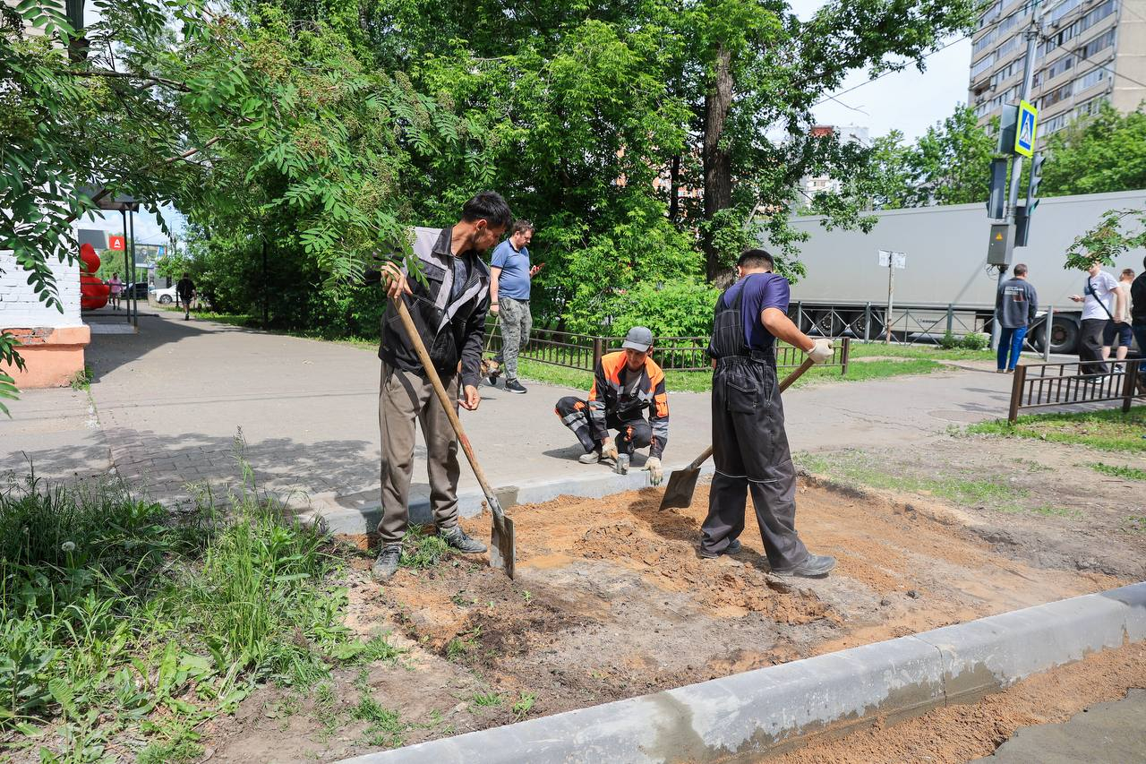 Установка бортового камня поможет предотвратить несанкционированные выходы на дорогу. Работы на данном участке уже завершены.