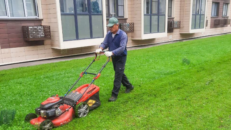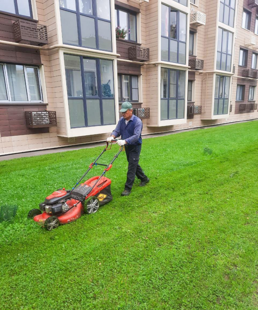 В ЖК «Катуар» проведены ручная уборка внутриквартальных проездов и покос травы
