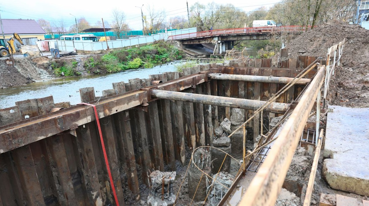 В микрорайоне Пироговский продолжается строительство нового моста через реку Клязьма. Общая площадь реконструируемого участка от ул. Комсомольской до ул. Центральной более километра. Новый мост будет двухполосным. Открыть рабочее движение на мосту планируется в начале 2028 года.