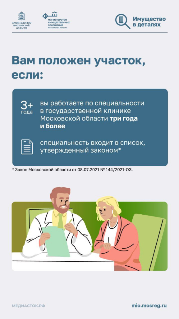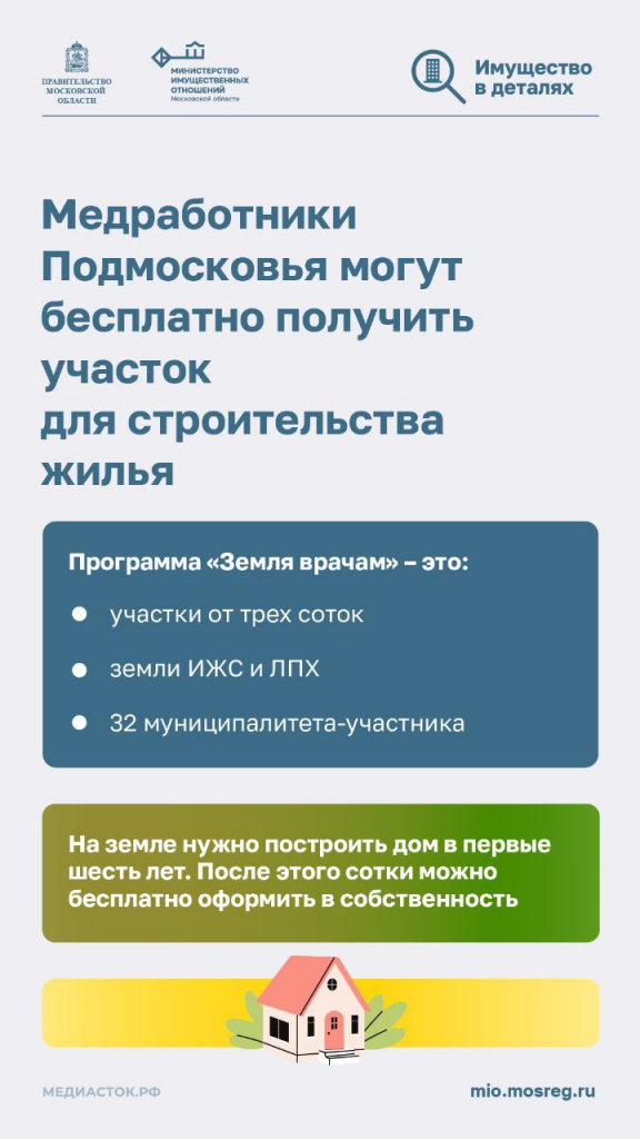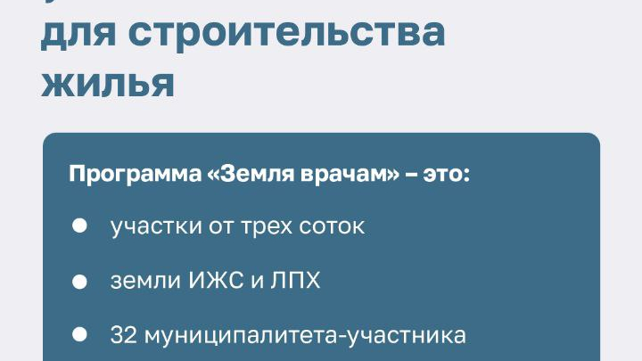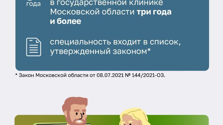 Программа "Земля врачам" в Подмосковье действует до 31 декабря 2026 года. Кто и на каких условиях может воспользоваться льготной поддержкой - в наших инфокарточках