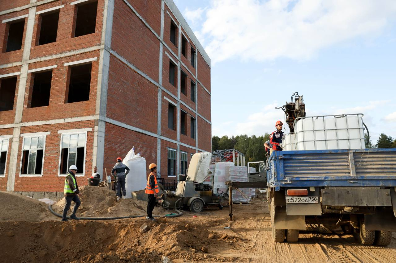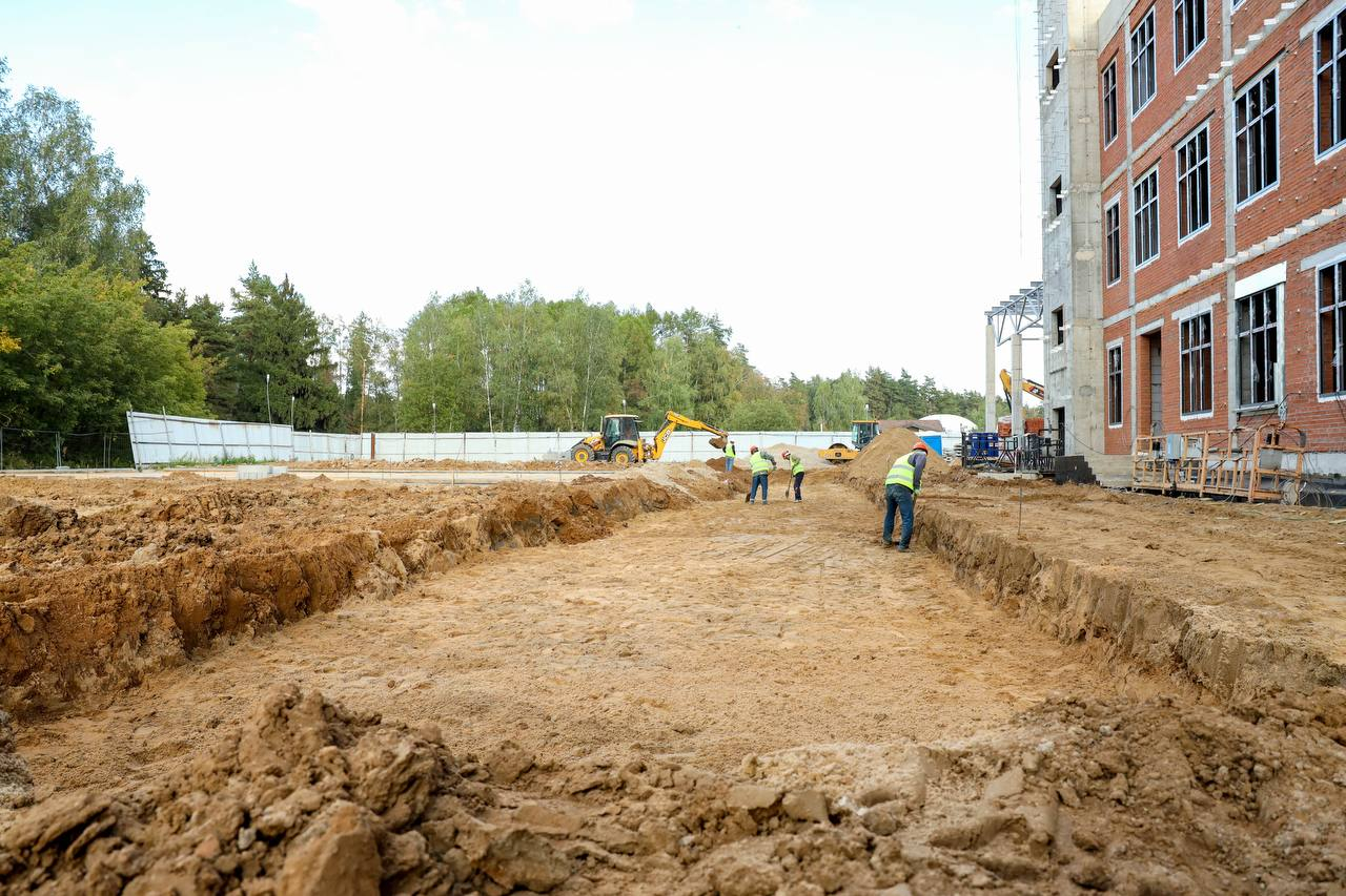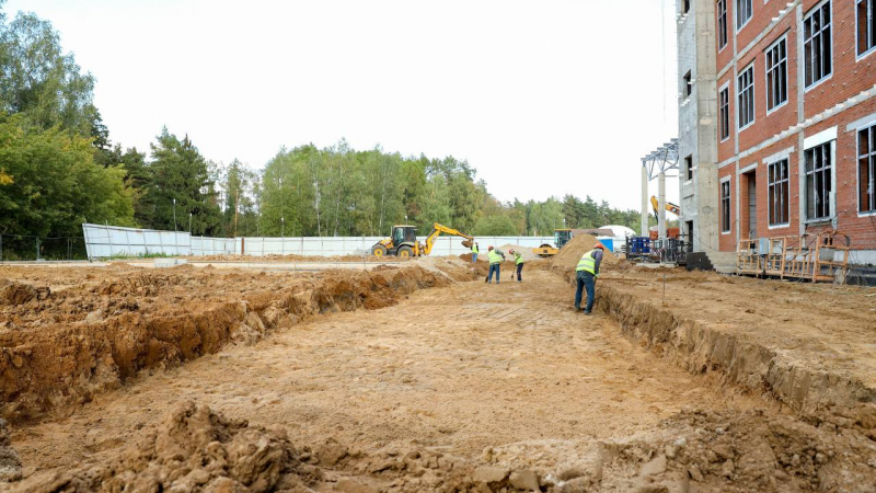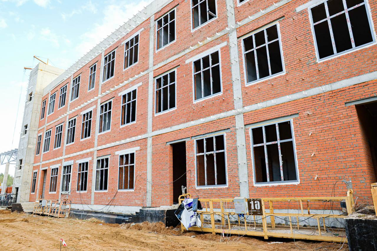 На объекте ведутся устройство кровли, установка оконных конструкций, внутренняя кладка актового и спортивного залов. Выполняется монтаж внутренних коммуникаций. В ноябре планируется запуск тепла в помещения.