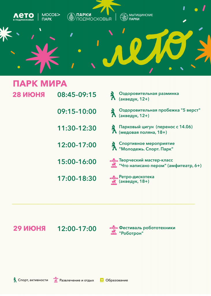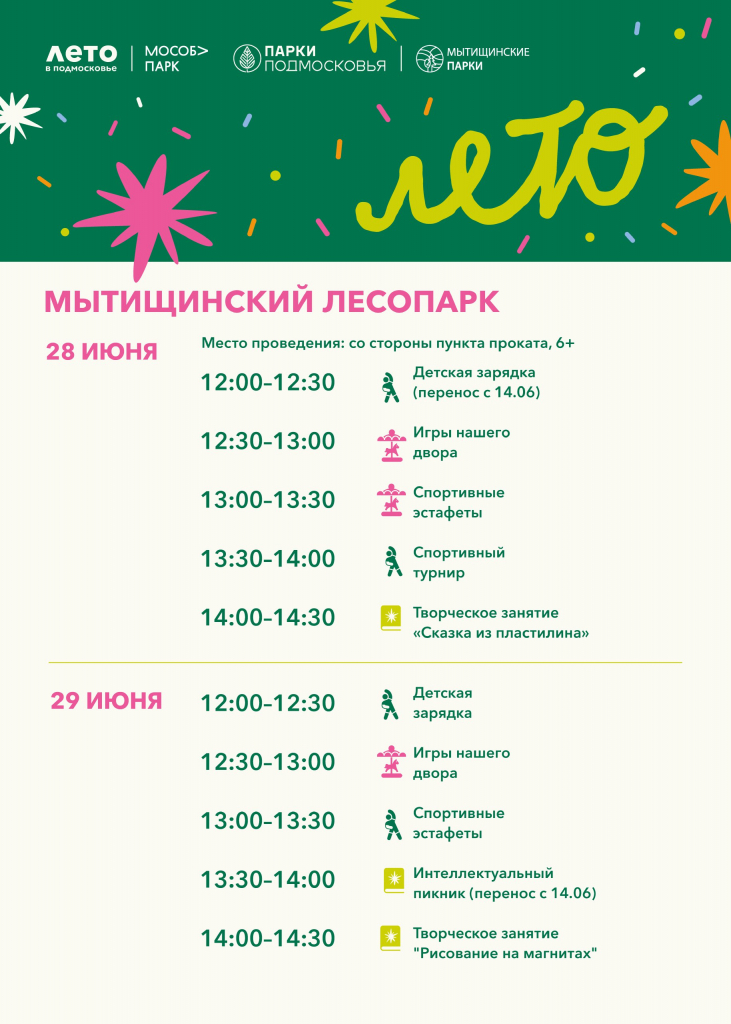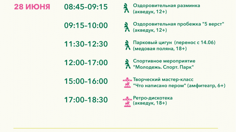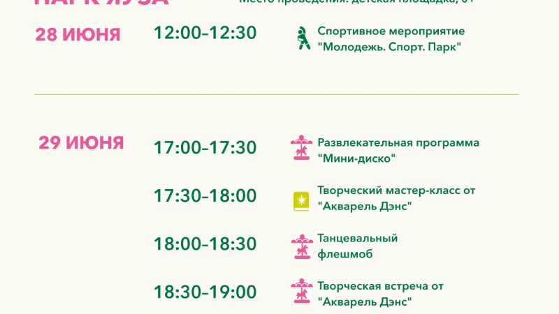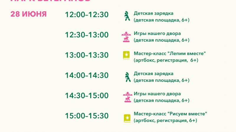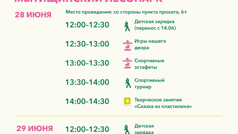 Расписание мероприятий 28 - 29 июня