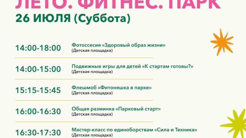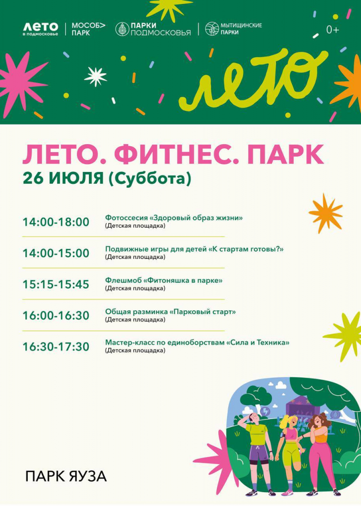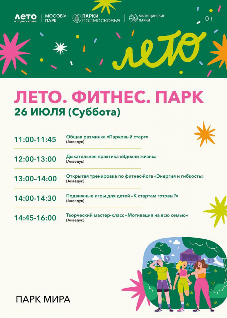 Мытищинские парки приглашают 26 июля провести активный и полезный день на свежем воздухе в рамках мероприятия «Лето.Фитнес.Парк».