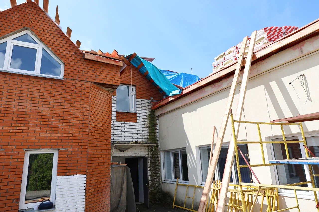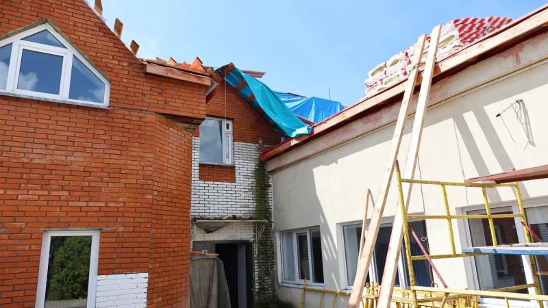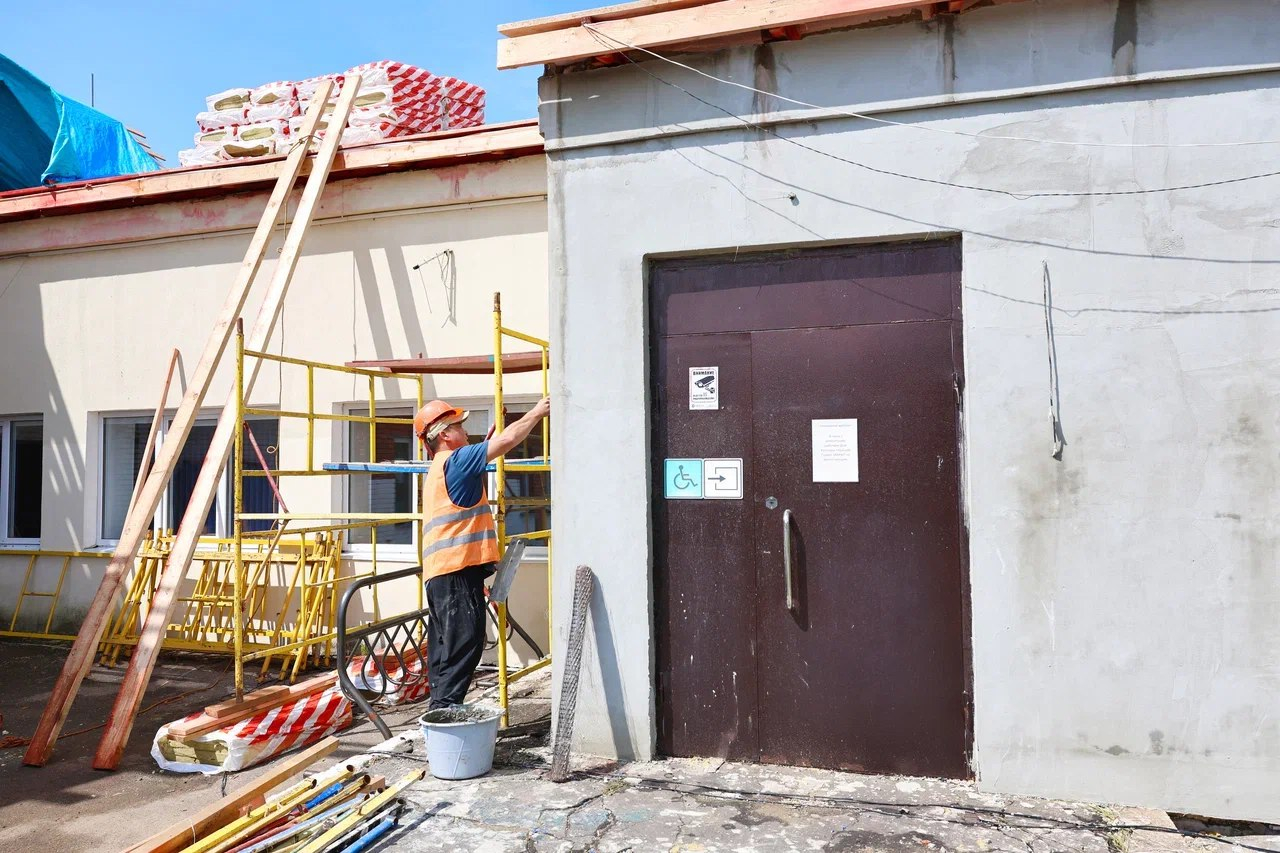 С годами обветшал фасад, стала протекать кровля, в связи с чем и были запланированы ремонтные работы. На сегодняшний день на объекте ведутся кровельные работы, идет частичный ремонт фасада с заменой кирпичей и утеплением входной группы. Также будут отремонтированы отмостки, проведены восстановительные внутренние работы с обновлением системы вентиляции. Срок завершения работ – 15 сентября, но подрядчик планирует выполнить свои обязательства до начала учебного года.