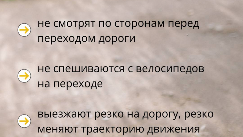 Спешивайтесь с велосипедов и самокатов на переходах.