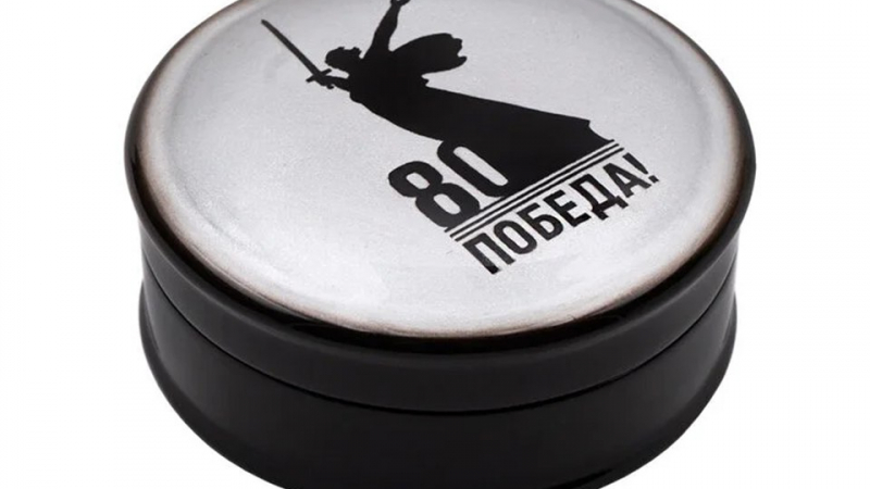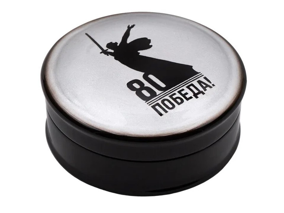 Автор эскиза – художник Алексей Пахомов использовал в нем ключевой элемент мемориального комплекса на Мамаевом курган, а мастера фабрики органично вписали в него цифру 80, символизирующую юбилейную дату окончания войны.