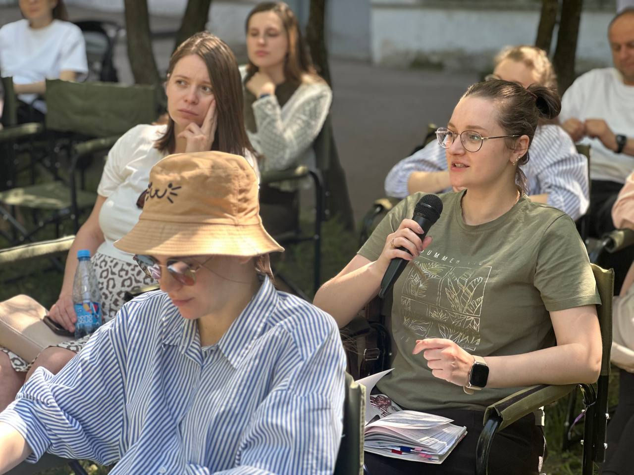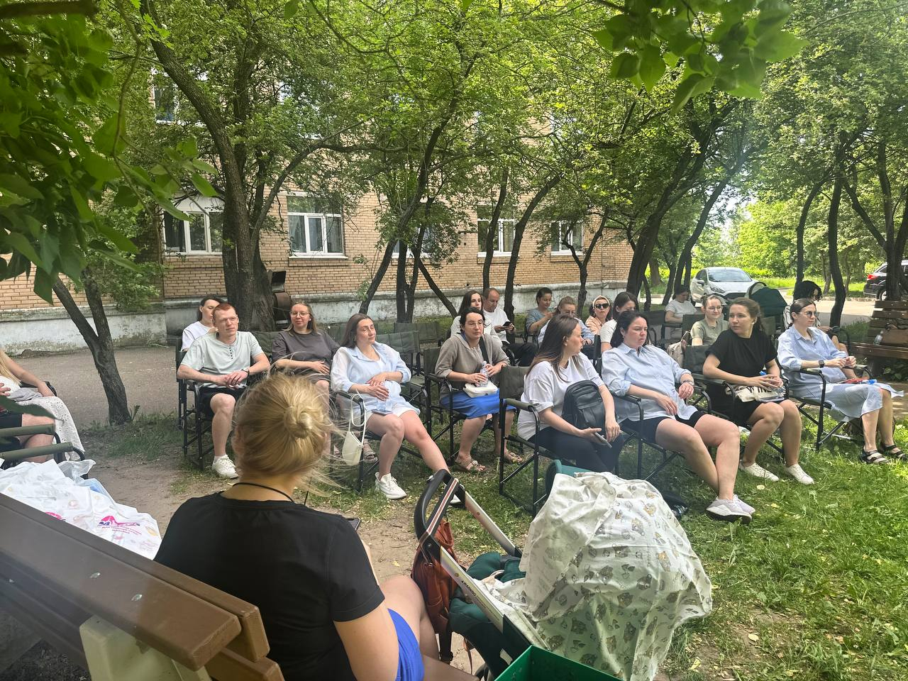 Формат open air очень полезен для здоровья будущих мам, да и знания лучше усваиваются, если получаешь их на свежем воздухе в кружевной тени растущих возле родильного дома деревьев.