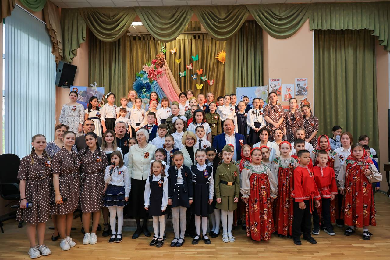 В Марфинской школе состоялся праздничный концерт, посвященный 80-летию Победы в Великой Отечественной войне. Почетными гостями мероприятия стали наши бойцы специальной военной операции, их семьи — жены, мамы и дети.
