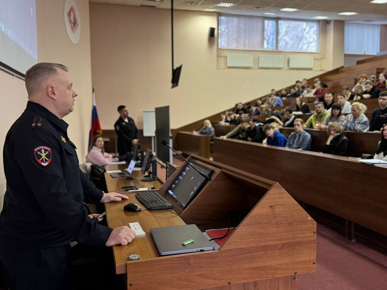 Начальник 2 Отдела полиции МУ МВД подполковник полиции Дмитрий Зюмкин рассказал студентам об особенностях работы в органах внутренних дел, о системе наставничества.