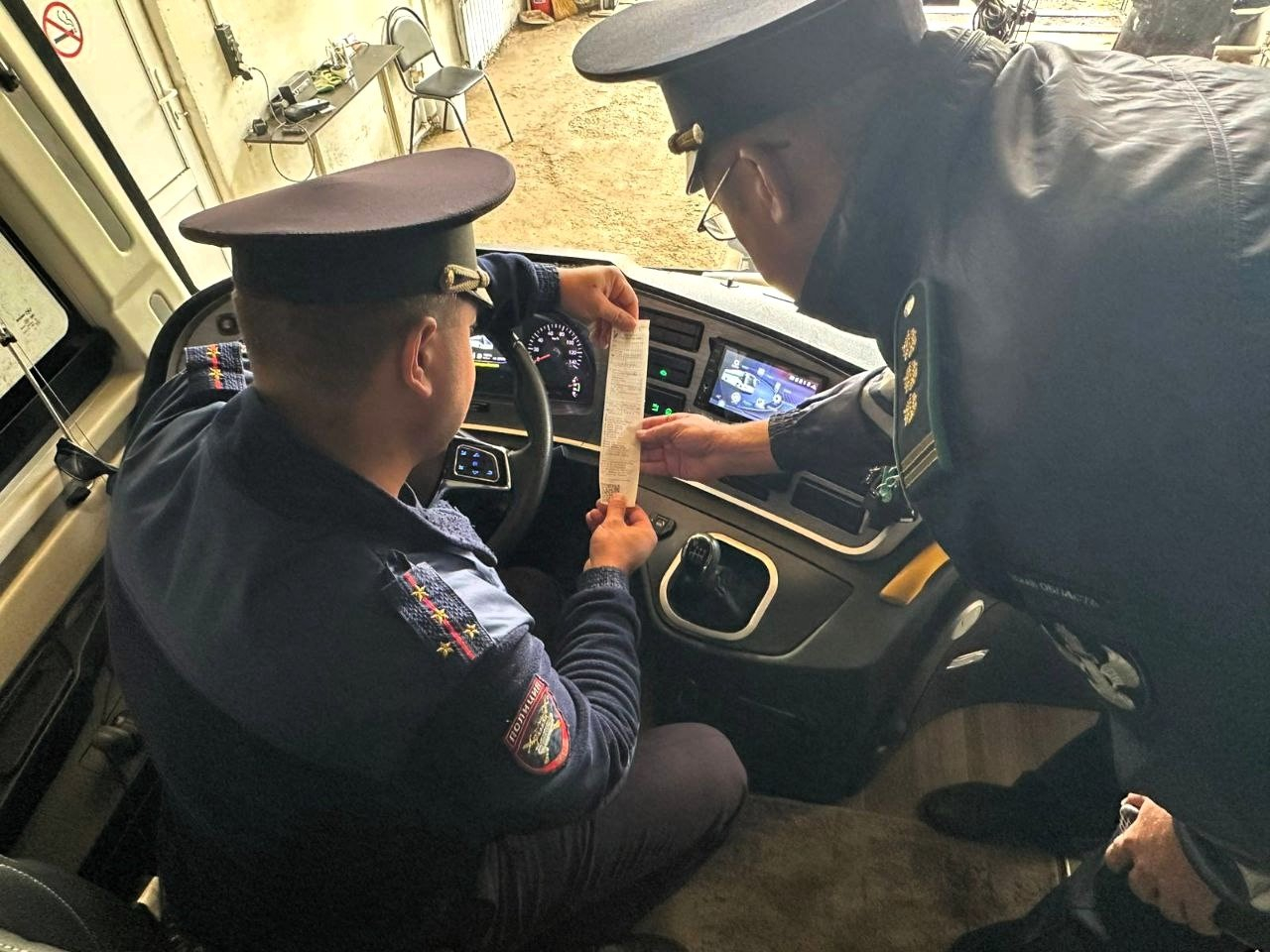 Первым этапом осмотра стало изучение салонов транспортных средств: были проверены наличие аптечки, огнетушителя и документов на автомобиль.