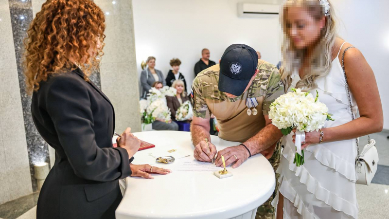 В мытищинском ЗАГСе сказали друг другу самые главные слова наш земляк, участник СВО Михаил и его избранница Ольга.