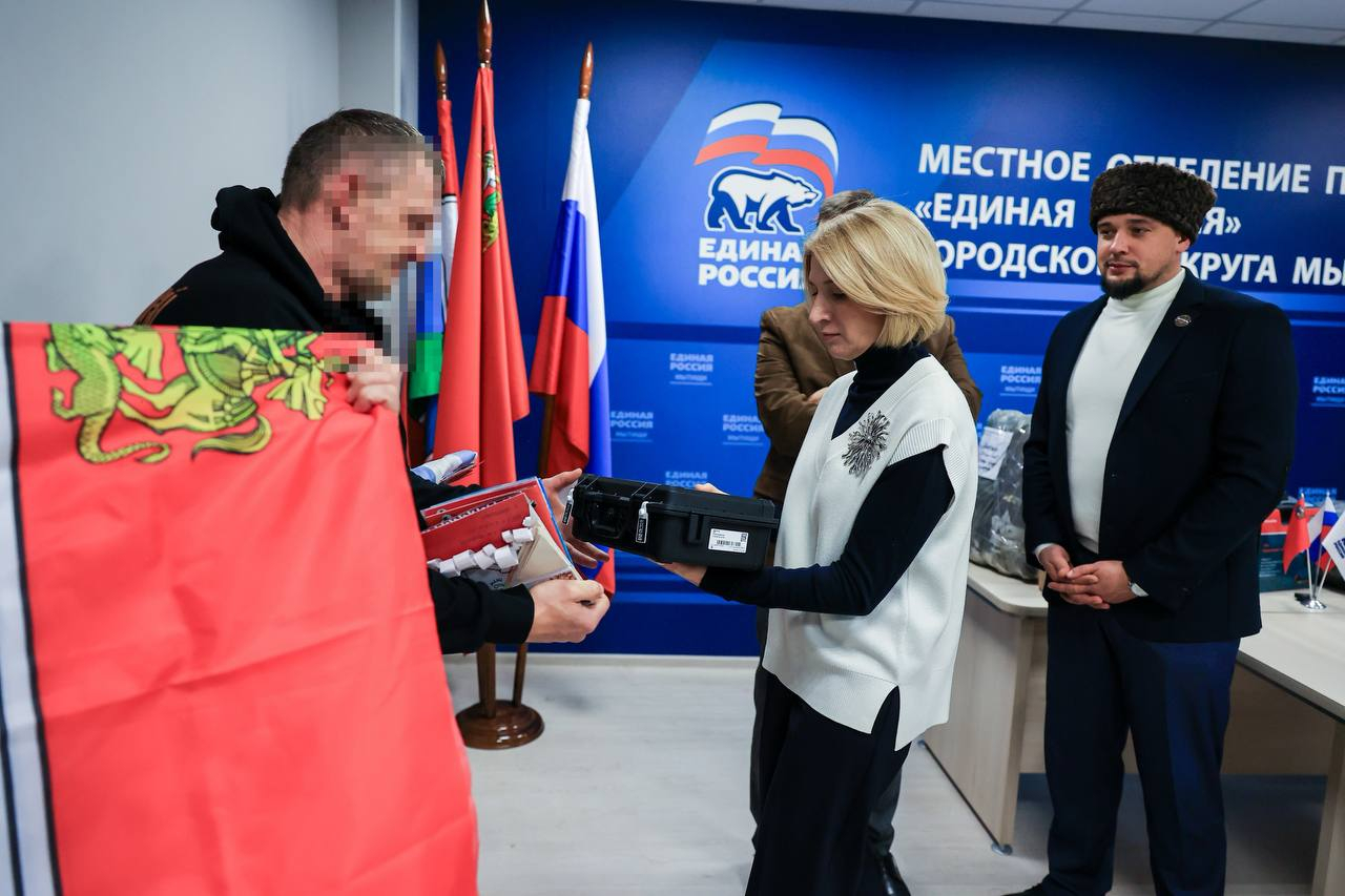 Секретарь местного отделения партии «Единая Россия», Глава городского округа Мытищи Юлия Купецкая совместно с депутатом Московской областной Думы Денисом Перепелицыным, первым заместителем секретаря местного отделения партии «Единая Россия» Андреем Гореликовым, руководителем фракции «Единая Россия» Юрием Гончаруком, депутатом Совета депутатов Григорием Шаповаловым и руководителем местного отделения Ассоциации ветеранов СВО Сергеем Пудовым передали гуманитарную помощь нашим землякам