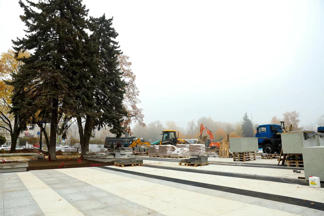 Работы по реконструкции театра драмы и комедии «ФЭСТ» и благоустройства сквера на финишной прямой. В здании продолжается отделка, а в сквере на новый постамент скоро вернут памятник Владимиру Ленину.