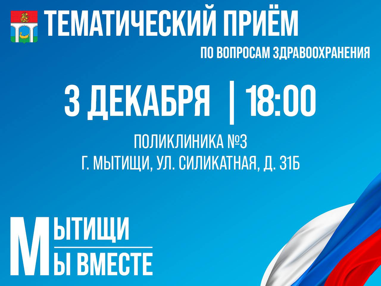Уважаемые жители городского округа Мытищи! Тематический прием граждан по вопросам здравоохранения пройдет 3 декабря