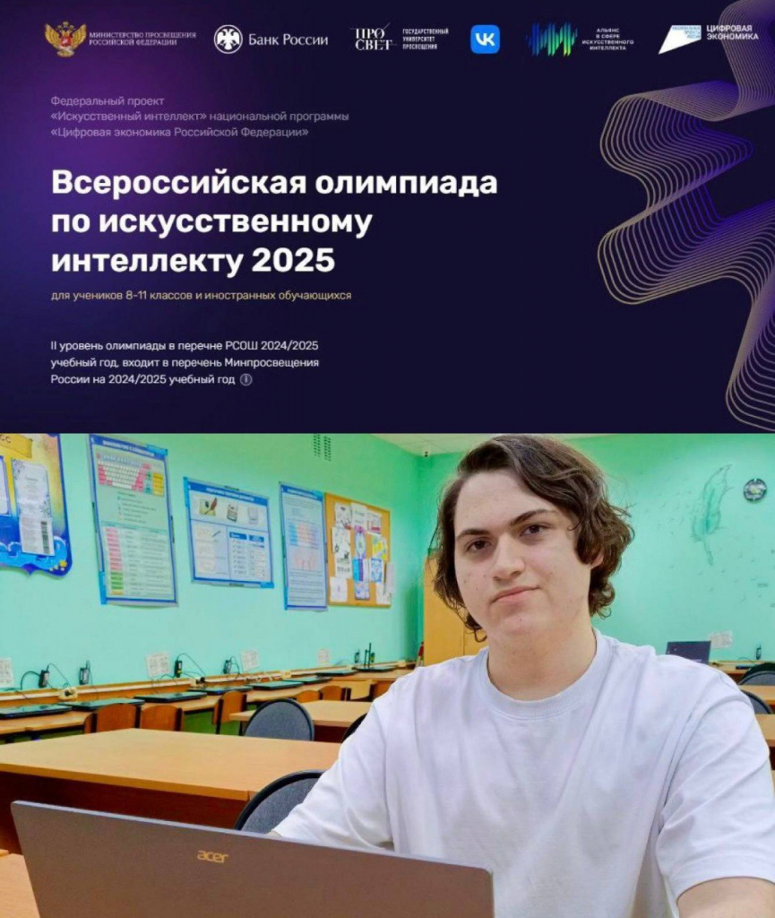 Ученик 11 класса школы № 14 городского округа Мытищи Евгений Терешин успешно прошел отборочный этап Всероссийской олимпиады по искусственному интеллекту и получил право участвовать в основном этапе, который пройдет с 16 по 19 октября.