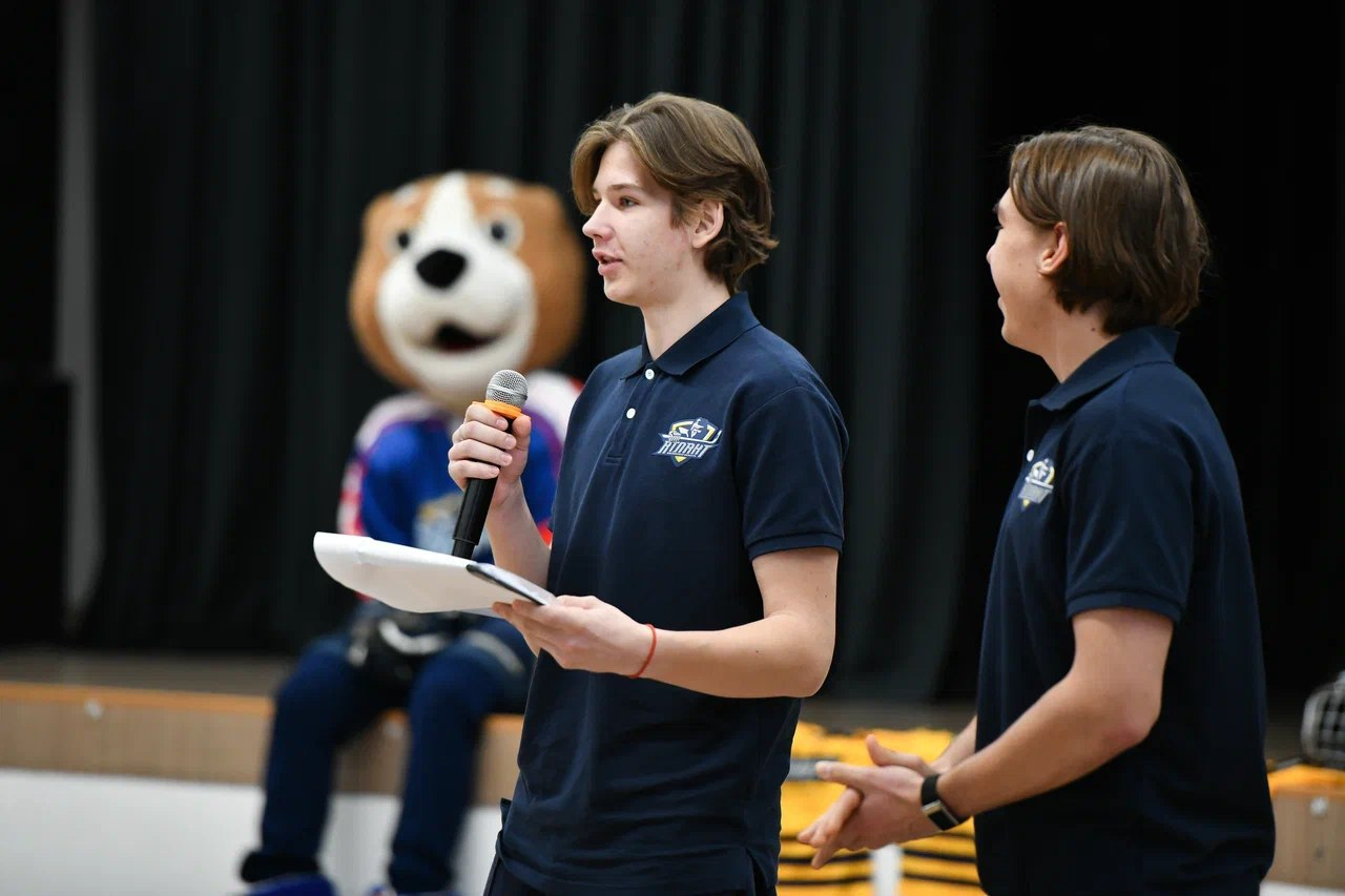 Игроки Молодежной хоккейной лиги из мытищинского «Атланта» Сергей Серегин и Богдан Кочкин, при участии талисмана нашей команды Алабая, провели «Урок хоккея» для учащихся начальных классов школы № 32.