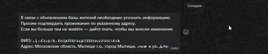 Сегодня многие граждане получили рассылку-сообщения в телеграмм от имени МФЦ о необходимости подтвердить свой домашний адрес!