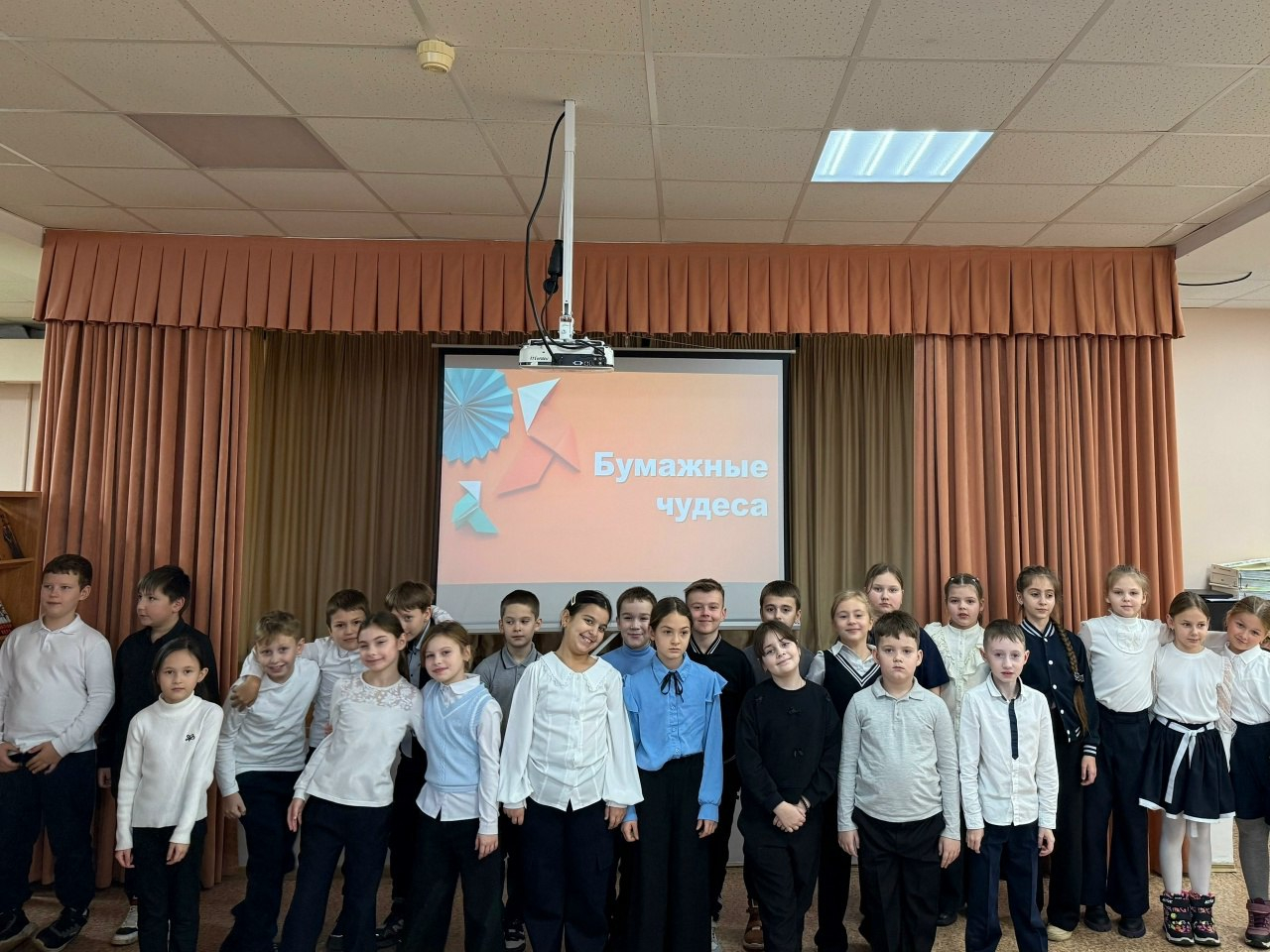 В рамках партийного проекта «Крепкая семья» в библиотеке №3 для школьников из МБОУ «СОШ №9» прошло увлекательное мероприятие «Бумажные чудеса», посвященное искусству оригами