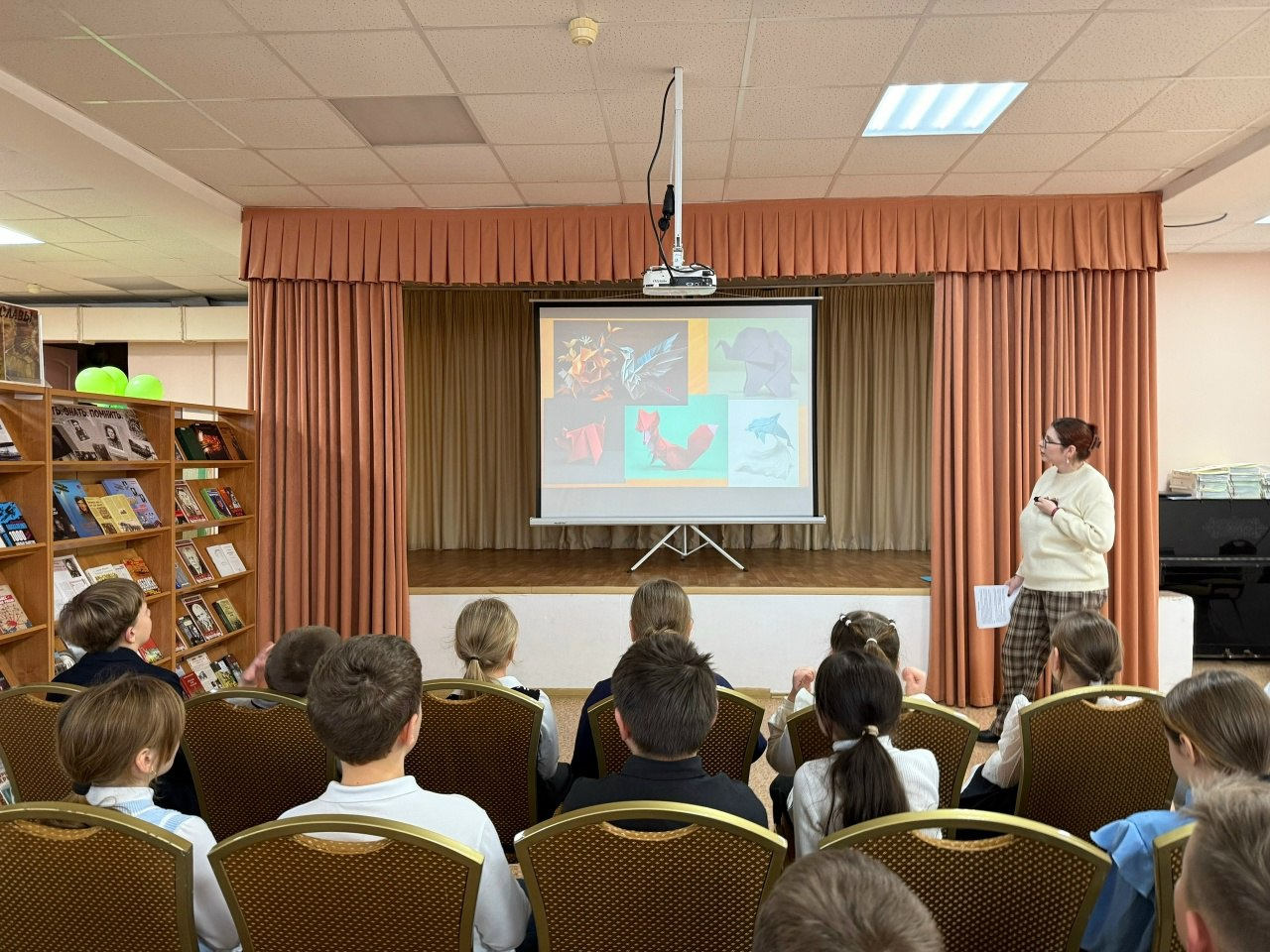 Мероприятие началось с увлекательной экскурсии в прошлое. Библиотекарь рассказал детям об истории оригами — древнего японского искусства складывания бумаги, которое возникло много веков назад.