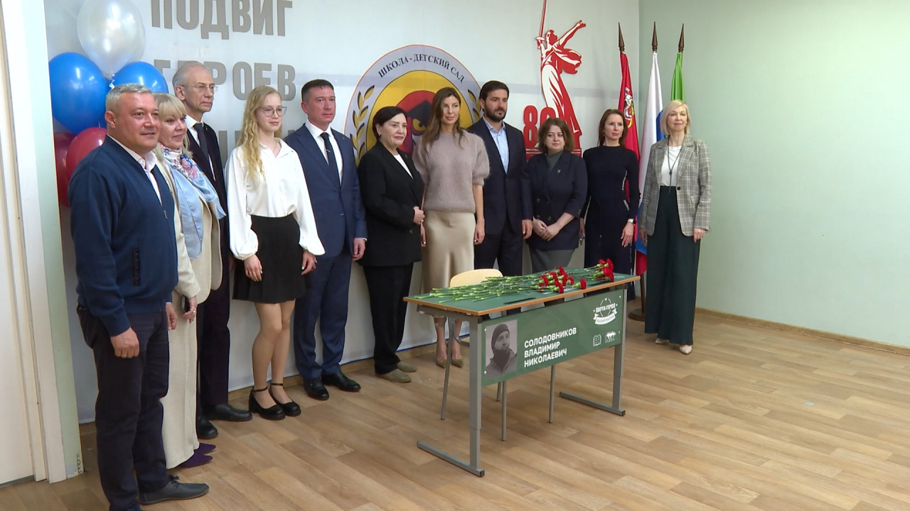 Кабинет «Славы и Мужества», а также парту героя открыли в частной школе «Вектор» в Мытищах в память о Владимире Солодовникове. В сентябре 2022 года он отправился в Донецкую Народную республику. Владимир был высококлассным стрелком и наводчиком. Погиб, защищая Родину, при выполнении боевого задания.
