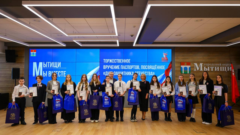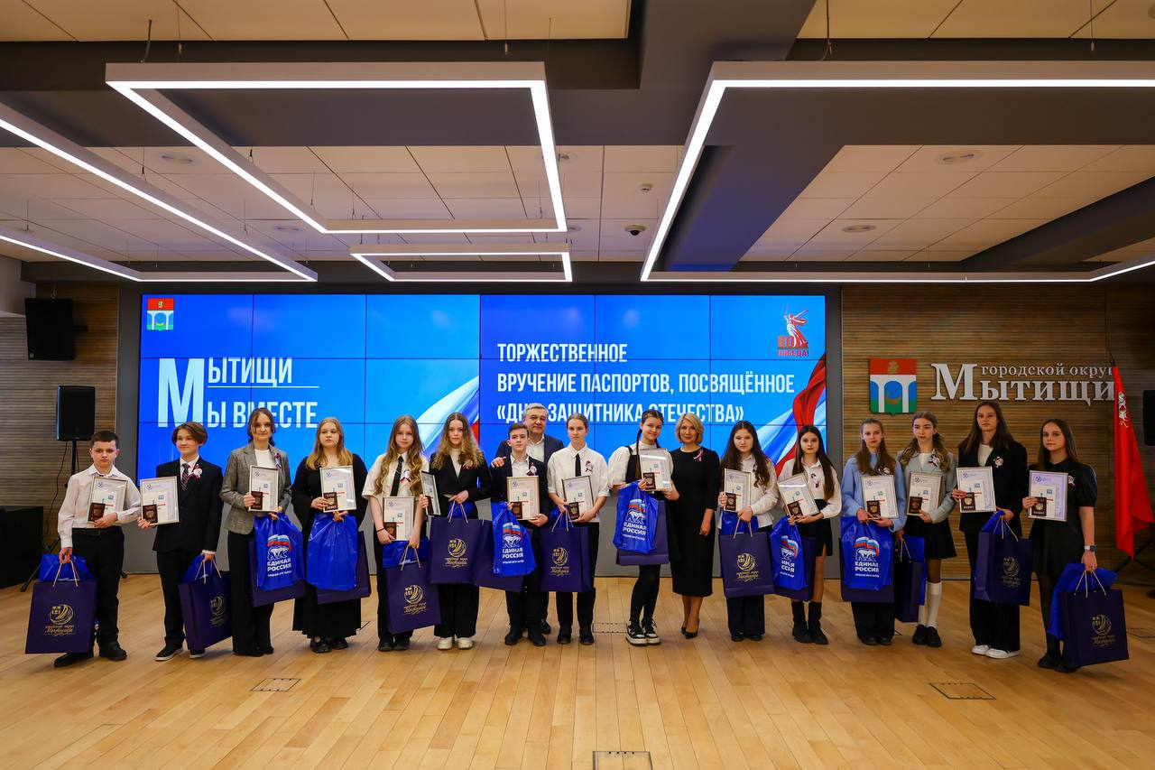 Накануне Дня защитника Отечества 15 юных мытищинцев получили свои первые паспорта в торжественной обстановке. Церемония прошла в администрации округа. Кроме того, ветерану Зое Александровне Катуркиной вручили утвержденную Указом Президента юбилейную медаль «80 лет Победы в Великой Отечественной войне 1941-1945 годов».