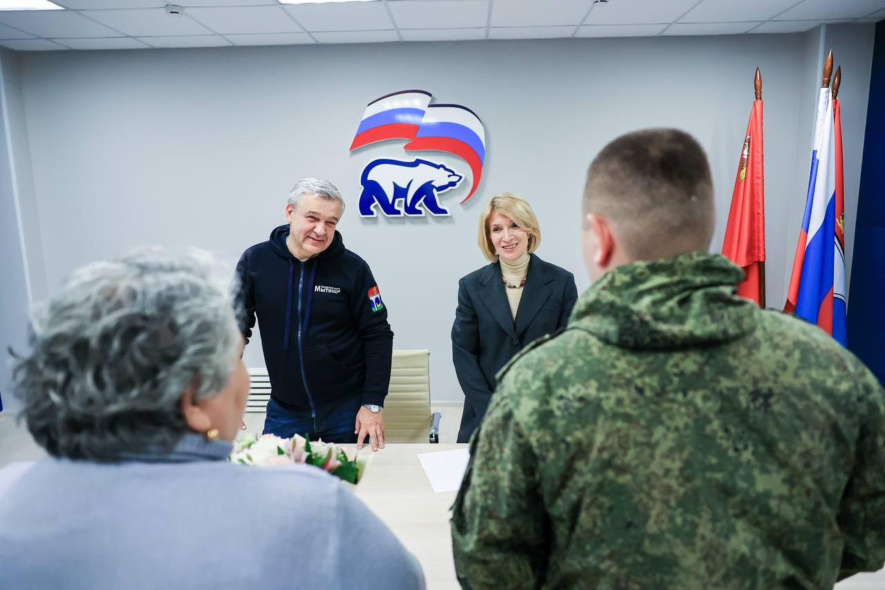 В местном отделении партии «Единая Россия» встретились с мытищинским военнослужащим и его мамой