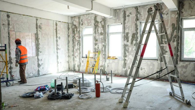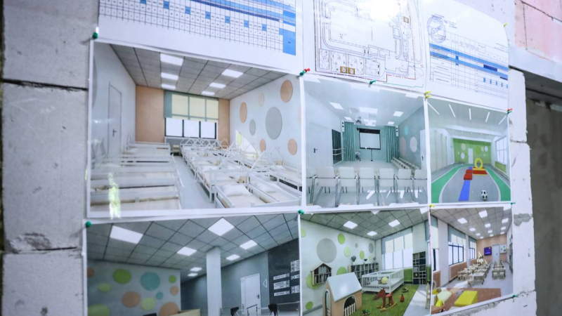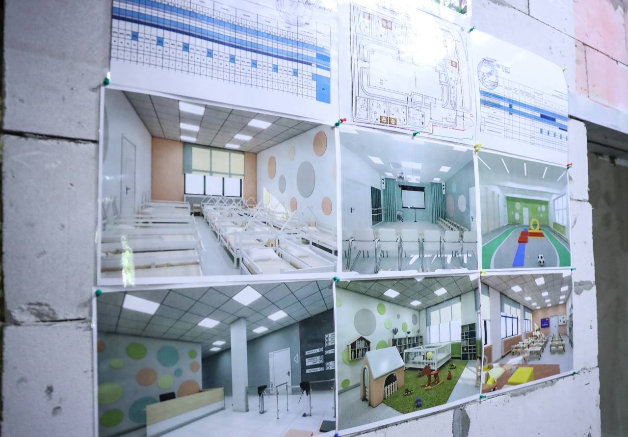 Сейчас на объекте задействовано 96 человек. Завершены работы по фасаду и кровле. Внутри здания продолжаются монтаж инженерных коммуникаций и отделка помещений.