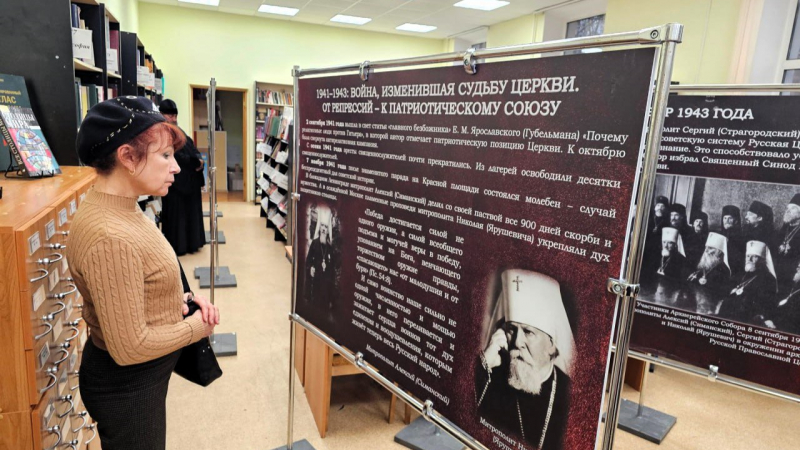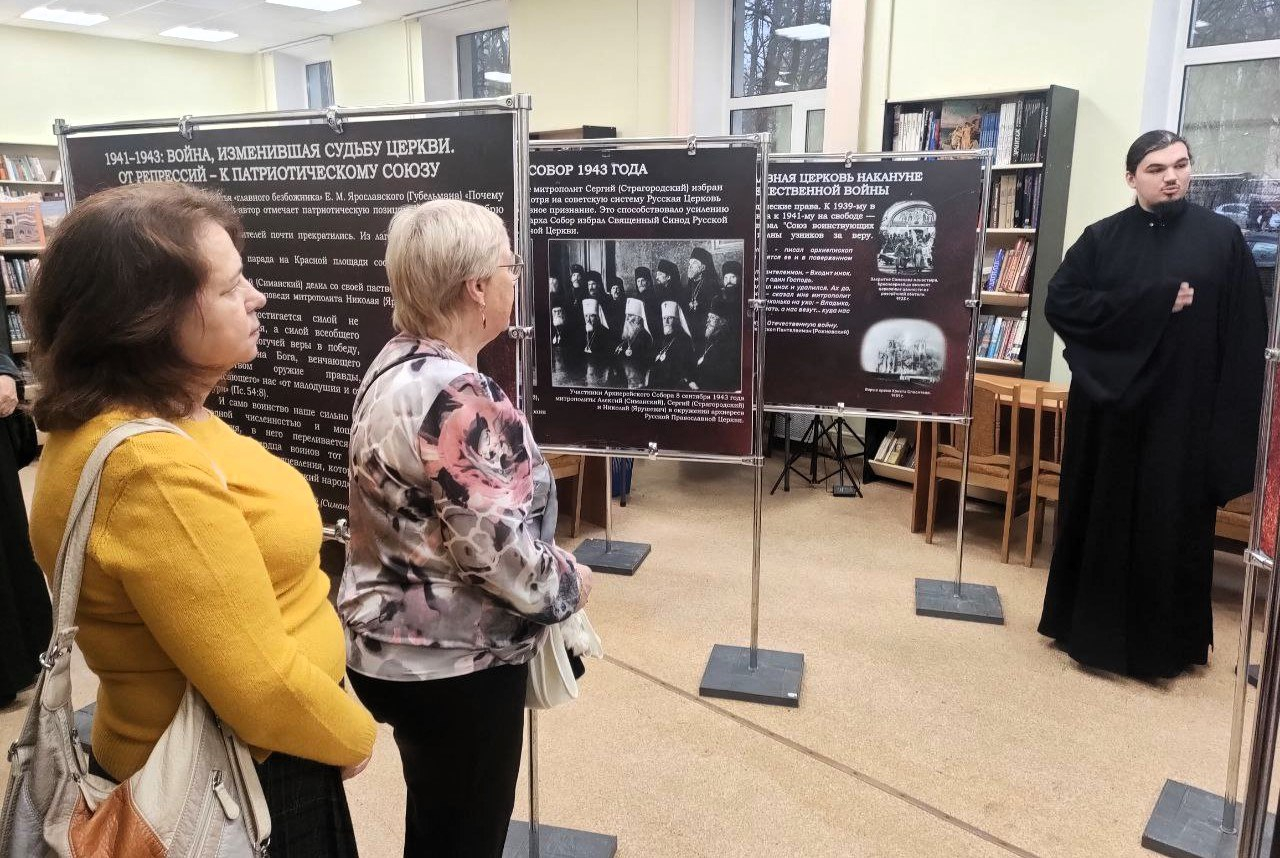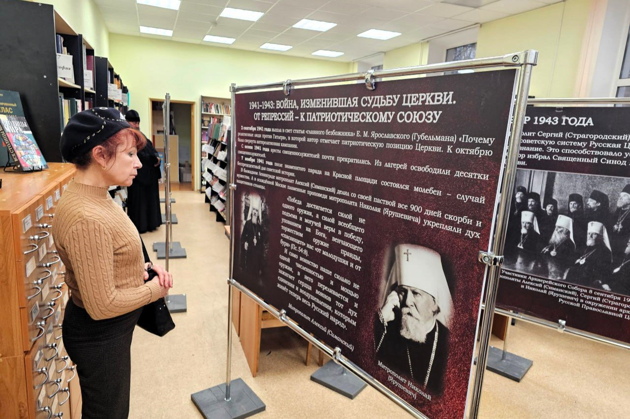 В Центральной библиотеке им. Д. Кедрина открылась передвижная выставка «Русская Церковь в годы войны: храмы и судьбы. Сергиево-Посадская епархия».