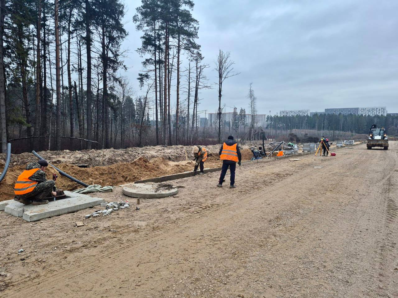 На участке дороги, расположенном между Пироговским шоссе и домом № 1 по улице Угольной, начались работы по монтажу шумозащитных экранов.