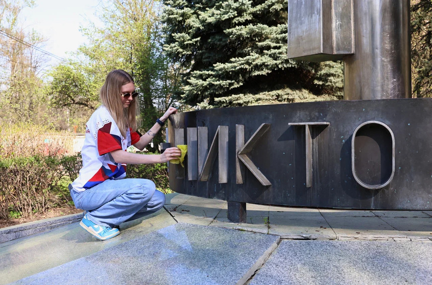 Волонтеры молодежного центра «Импульс» провели уборку территории около памятного знака «40 лет Победы» в составе памятника «Штык» в микрорайоне Леонидовка.