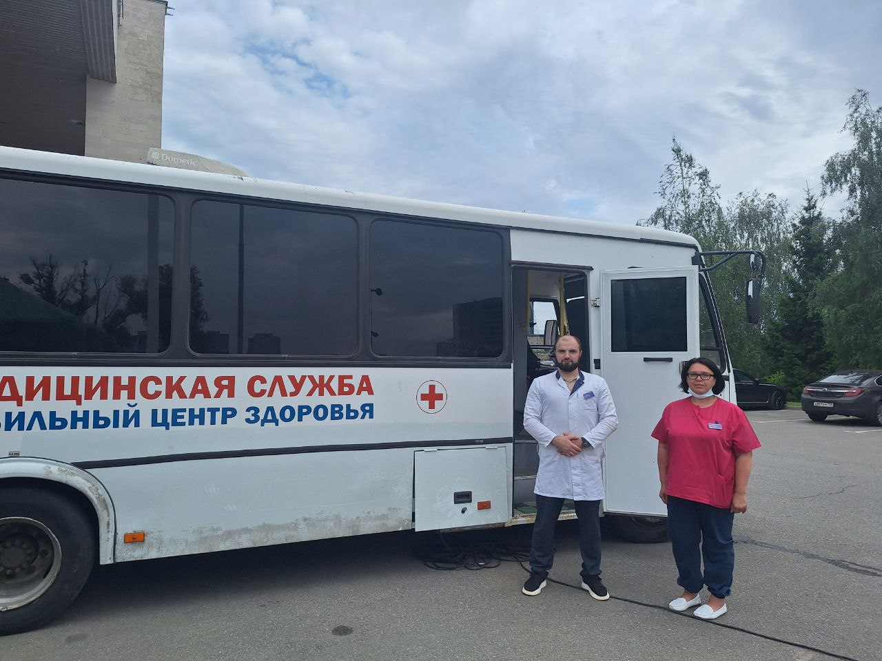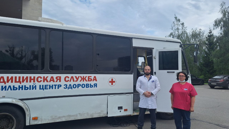 Мобильный медицинский комплекс сегодня выезжал на очередное дежурство возле Дворца культуры «Яуза». И это не просто формальность: наличие передвижного медицинского пункта в общественном месте в жаркие июльские дни имеет большое значение для жителей городского округа.