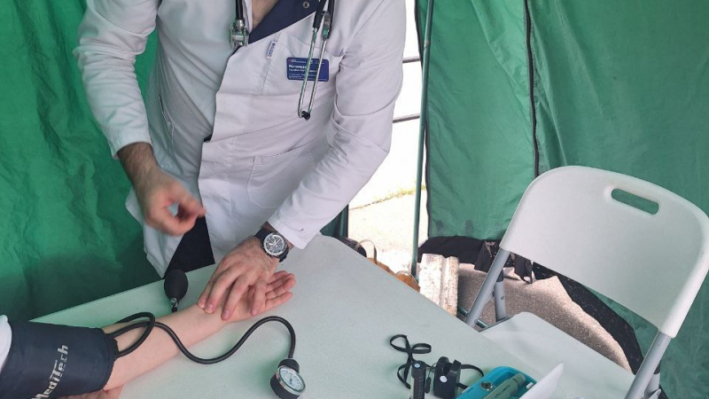 Основной задачей медицинской бригады является проведение первого этапа диспансеризации граждан, которые пользуясь случаем, совмещают субботнюю прогулку в парке с контролем состояния своего здоровья.