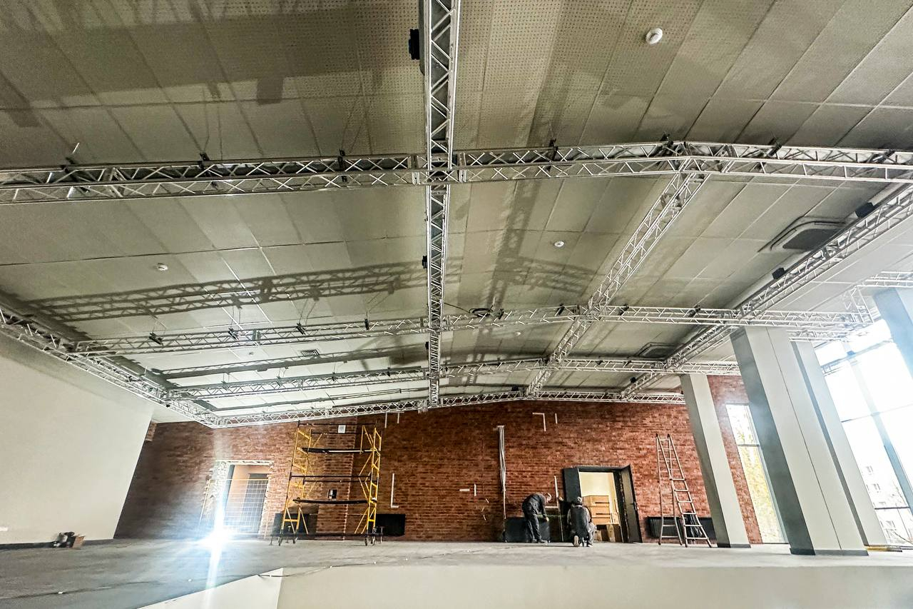Внутри здания устанавливаются стеновые панели в зрительных залах, подключаются слаботочные системы.