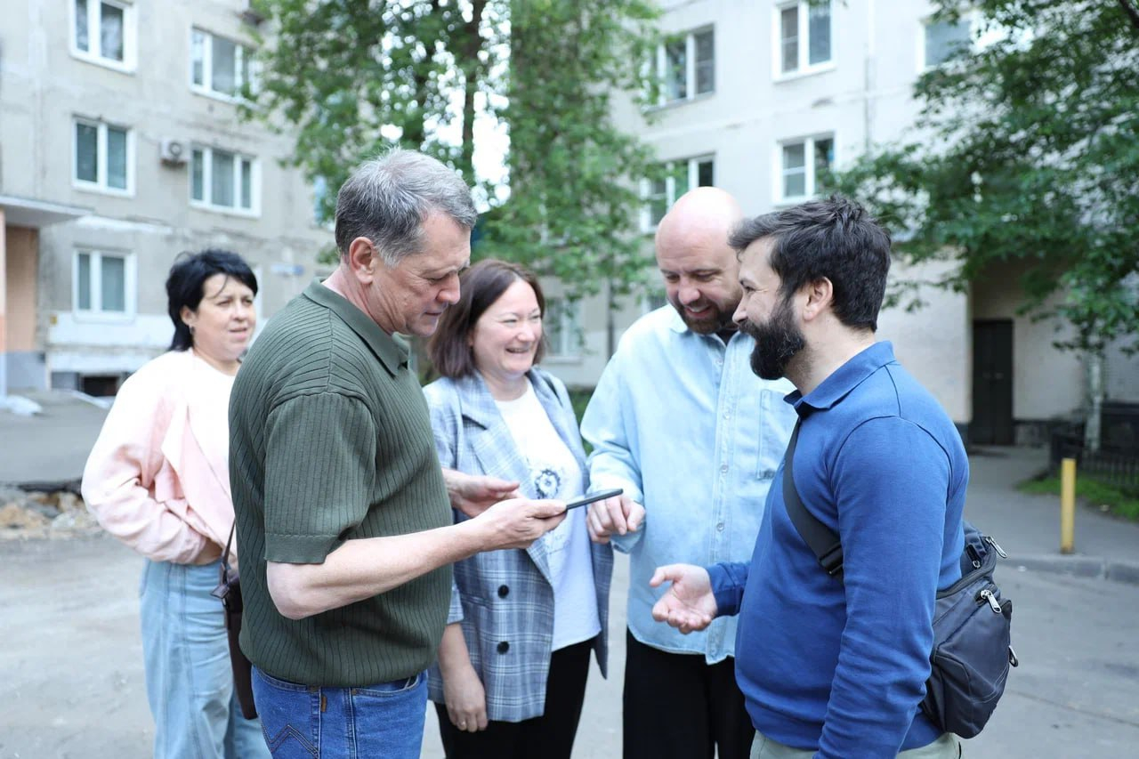 На Олимпийском проспекте, около дома 22, корп. 1 и четырех близлежащих МКД развернулись работы по замене асфальтового покрытия площадью около 7000 кв.м. В ходе проверки с жителями обсудили вопросы: