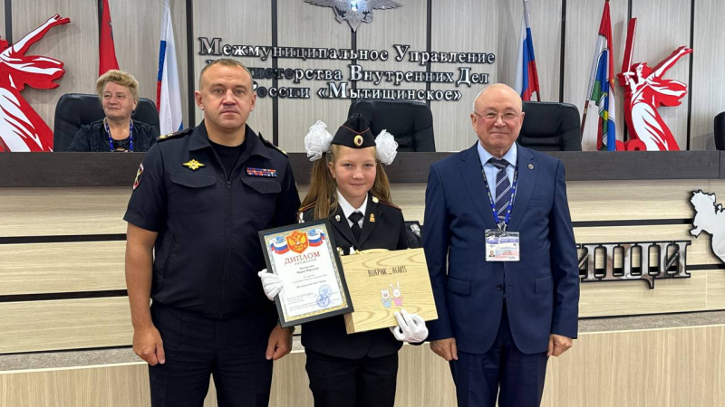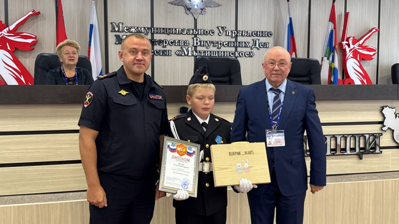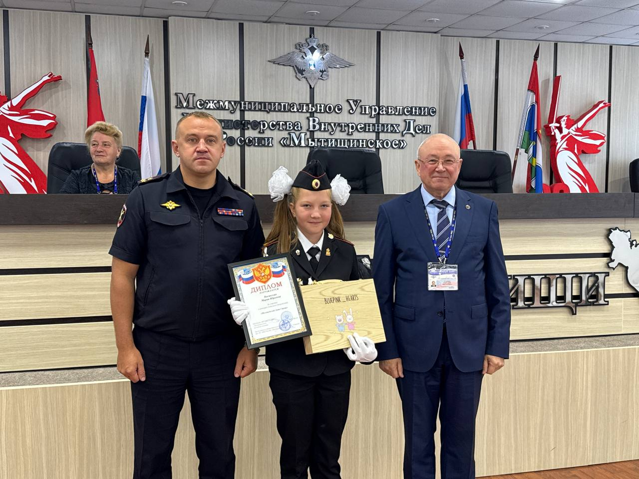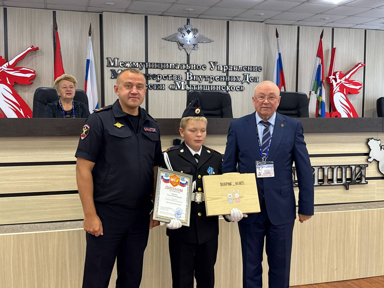 Начальник МУ МВД России «Мытищинское» полковник полиции Николай Жуков совместно с председателем Общественного совета при МУ МВД Геннадием Старцевым наградили учащихся кадетского класса МАОУ СОШ № 11 г.о. Долгопрудный за активное участие в конкурсе детского творчества «Полицейский Дядя Степа».