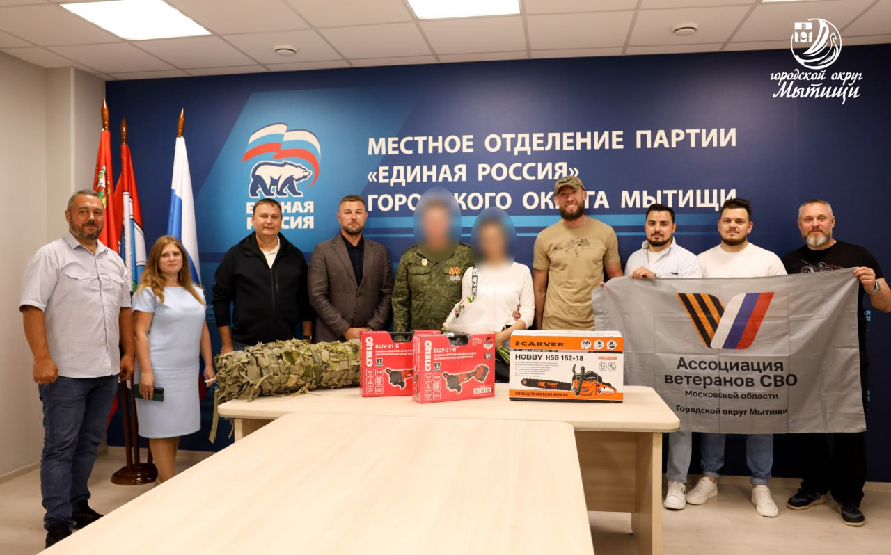 В мытищинском отделении «Единой России» встретились с участником СВО «Уралом» и передали ему необходимое оборудование