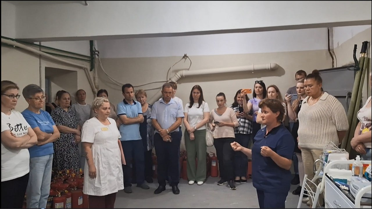 Подобные учения проводятся в больнице регулярно. Каждый медицинский работник знает, где находятся укрытия, в которые персонал и больные должны будут проследовать в случае необходимости и как применять все имеющиеся в арсенале лечебного учреждения противопожарные средства.