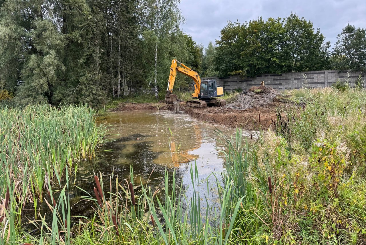 В мытищинской деревне Высоково начались работы по очистке пруда