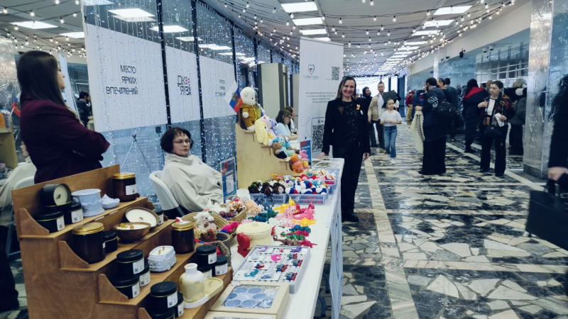 Мероприятие прошло в живописной обстановке, где активисты и волонтеры представили разнообразные изделия ручной работы — сувениры, украшения, вышитые изделия, открытки и предметы декора.