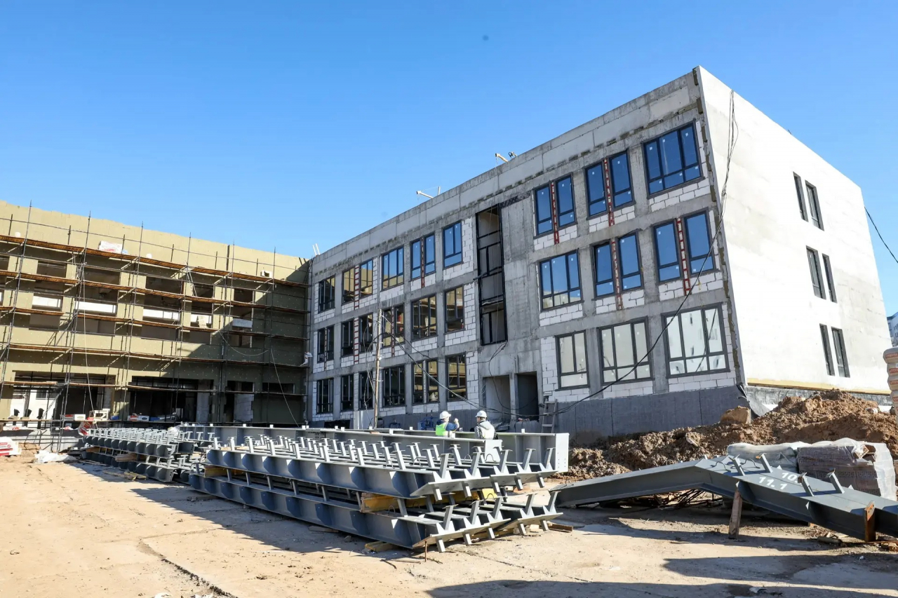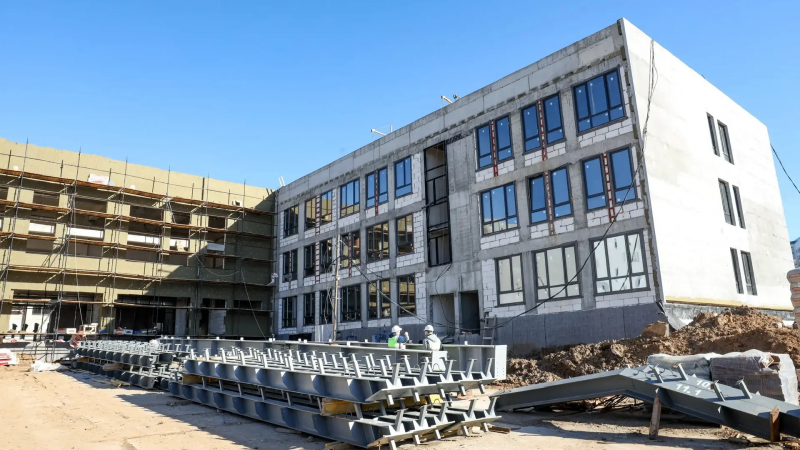 В жилом комплексе «Мытищи Парк» продолжается строительство новой школы на 850 мест. Объект реализуется в рамках Народной программы партии «Единая Россия». На сегодняшний день завершены основные монолитные и кладочные работы, в полном объёме завезено остекление. Строители приступили к внутренней отделке помещений и монтажу инженерных систем, переходя к следующему этапу реализации проекта.
