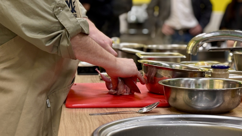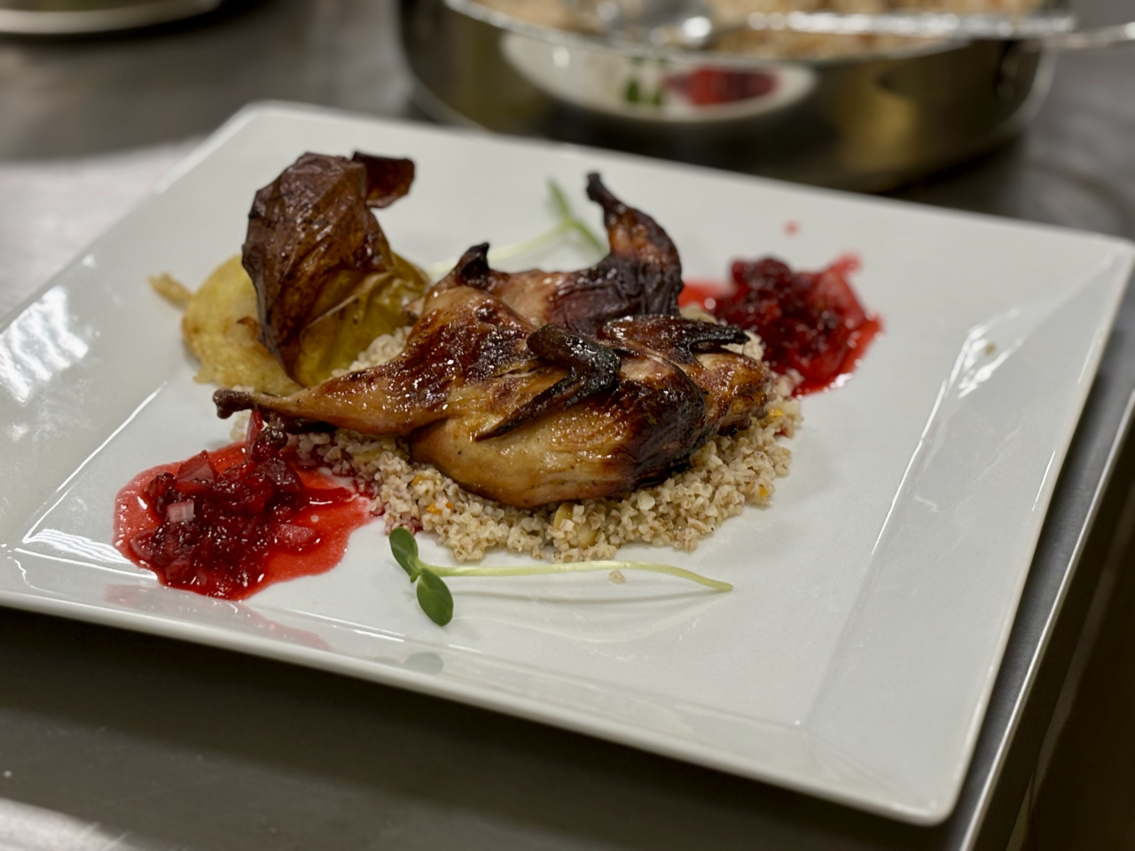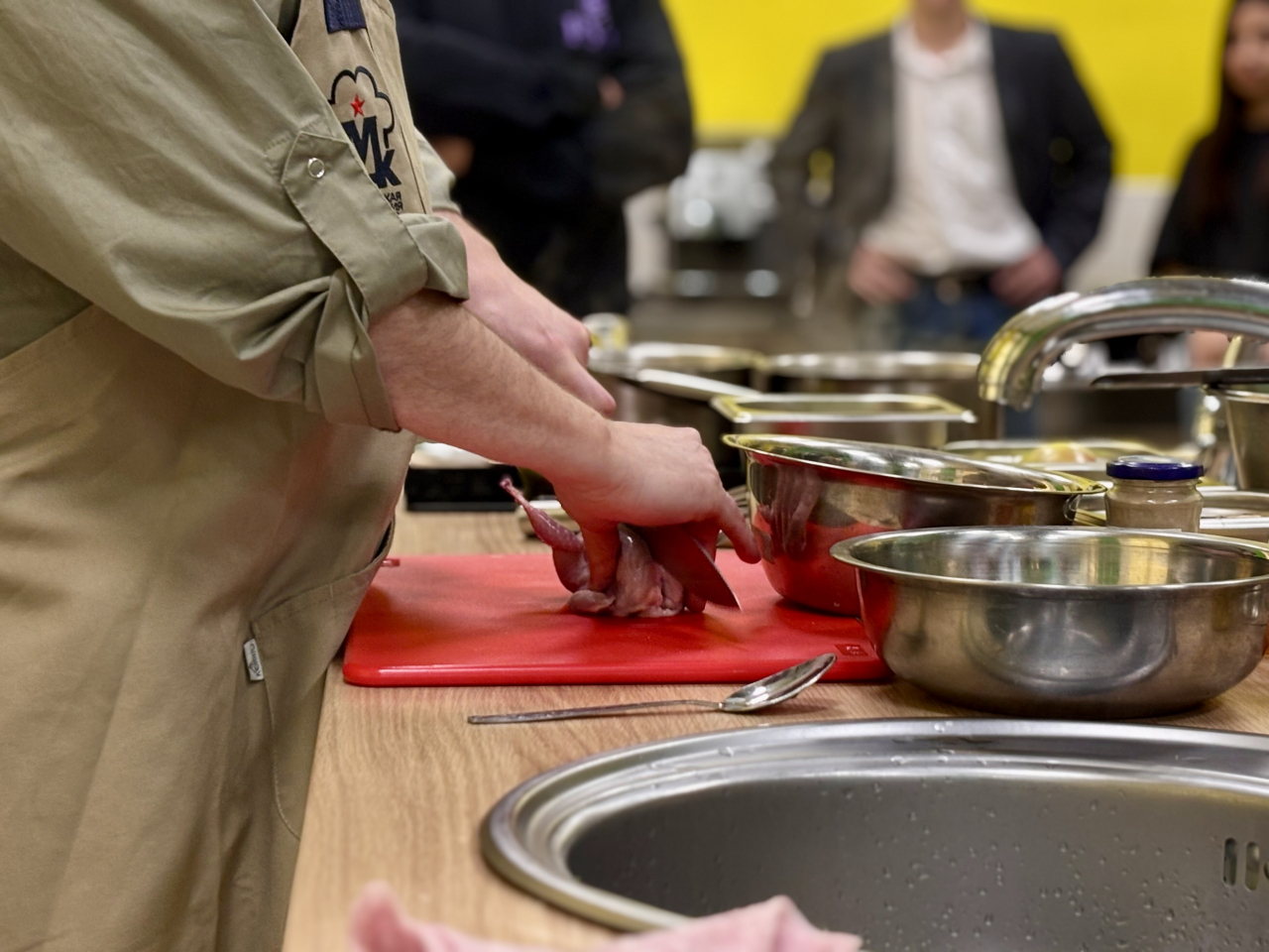 23 октября в Российском университете кооперации состоялось событие, которое собрало всех любителей гастрономии. Известный шеф-повар, телеведущий канала «Спас», владелец кулинарной студии «Кремлёвская кухня» и автор 18 кулинарных книг Олег Николаевич Ольхов провёл уникальный мастер-класс по приготовлению блюда «Перепёлка с полбой, белыми грибами и брусничным взваром».