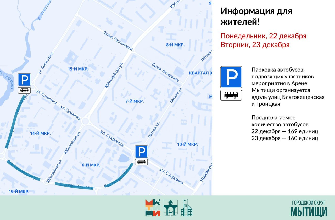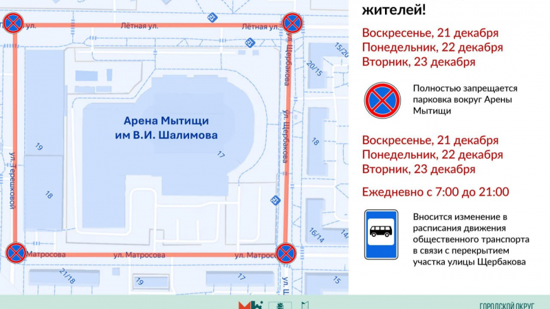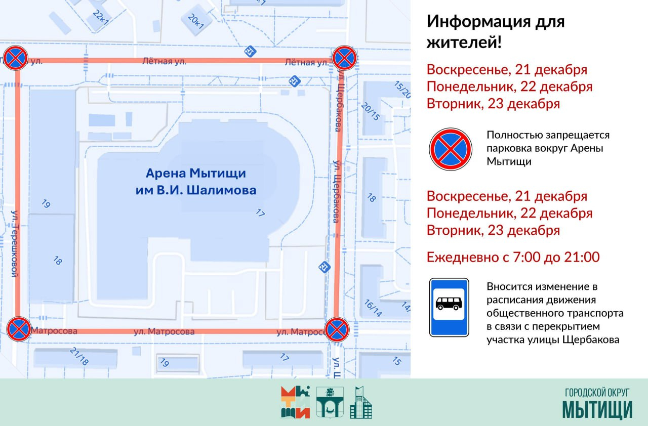 ВНИМАНИЕ! 21, 22 и 23 декабря парковка автотранспорта вокруг Арены Мытищи имени В.И. Шалимова будет ЗАПРЕЩЕНА!