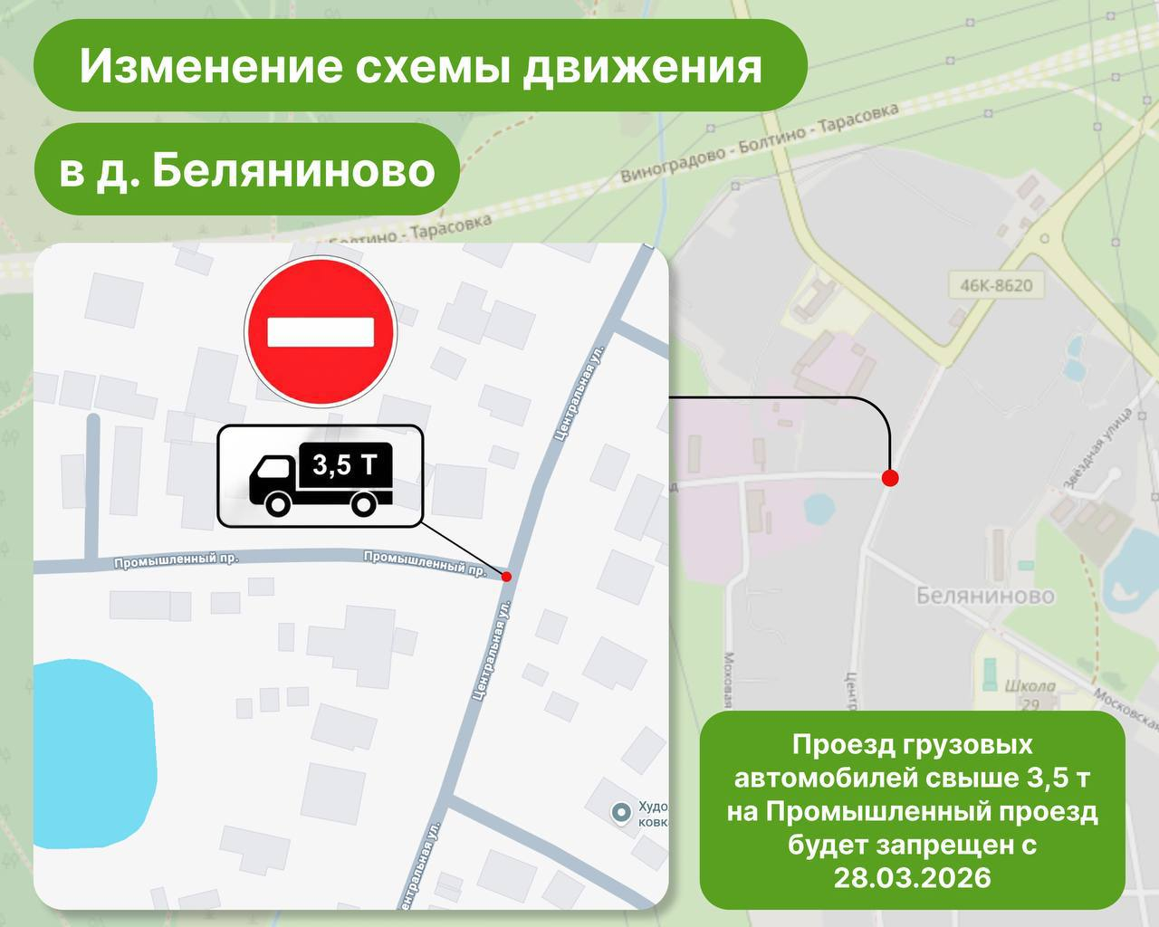 С 28 марта 2026 года в деревне Беляниново меняется схема дорожного движения.