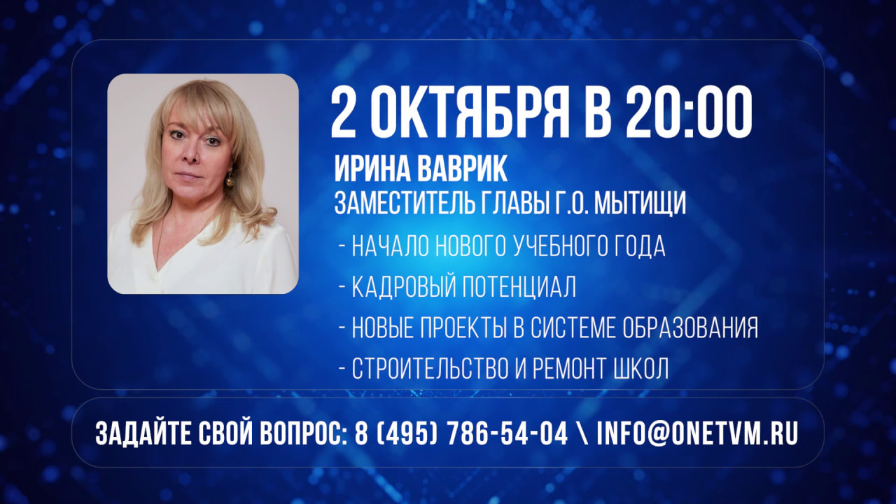 Открытие новых школ и детских садов, привлечение педагогических кадров, современные образовательные программы. Об этом и не только будет говорить уже в этот четверг с заместителем главы г.о. Мытищи Ириной Ваврик в программе «Диалог с властью». Свои вопросы наши телезрители могут задавать уже сейчас.