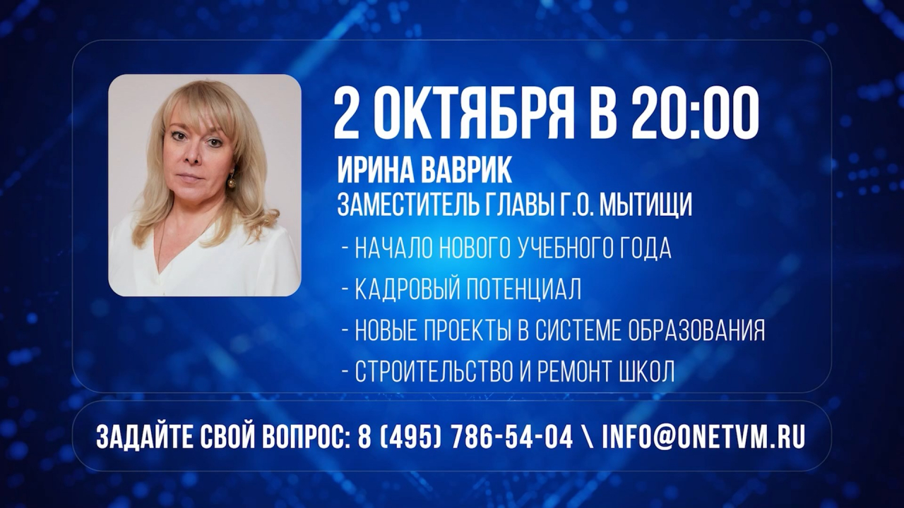 Открытие новых школ и детских садов, привлечение педагогических кадров, современные образовательные программы – об этом и не только будем говорить уже в этот четверг с заместителем главы г.о. Мытищи Ириной Ваврик в программе «Диалог с властью». Свои вопросы наши телезрители могут задавать уже сейчас. Пишите нам и звоните, телефоны редакции вы видите на своих экранах.