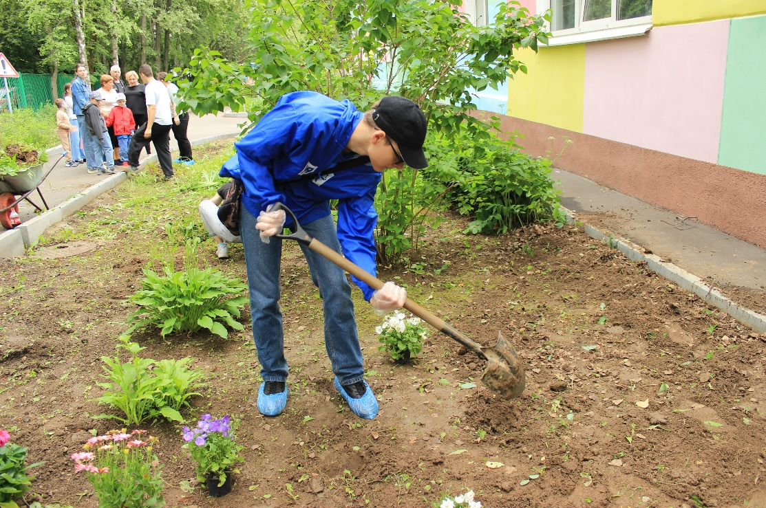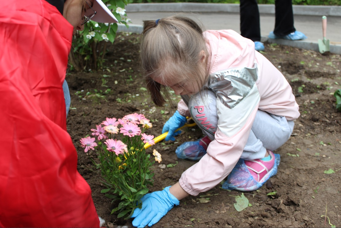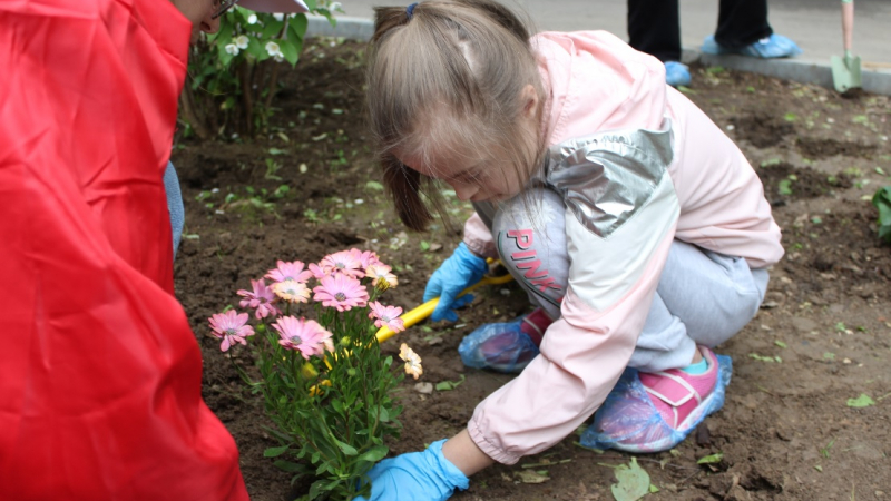 Воспитанники школы-сада для детей с ОВЗ посадили цветы в Мытищах