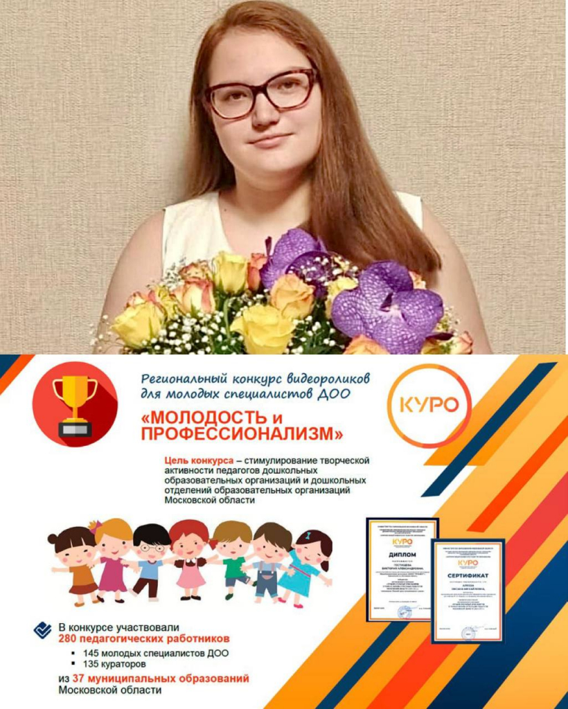 В течение двух месяцев проходил региональный конкурс видеороликов педагогов и их наставников «Молодость и профессионализм», в котором приняли участие 280 педагогических работников (145 молодых специалистов ДОО и 135 кураторов) из 37 муниципальных образований Московской области. В их числе –воспитатель дошкольного отделения «Дельфин» гимназии № 1 городского округа Мытищи Юлия Шелягина.