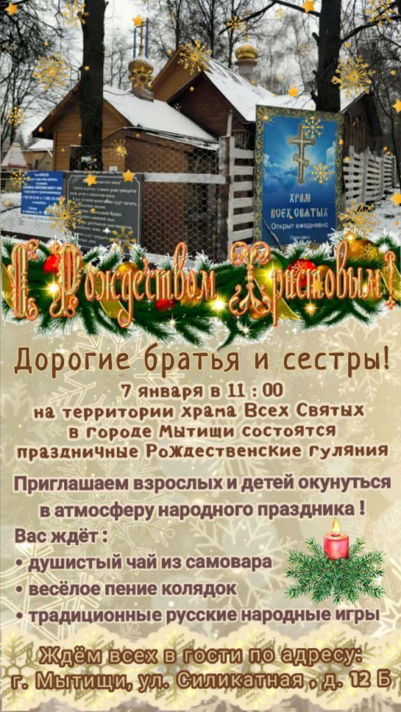 Всехсвяткий Храм приглашает мытищинцев на праздничные Рождественские гуляния